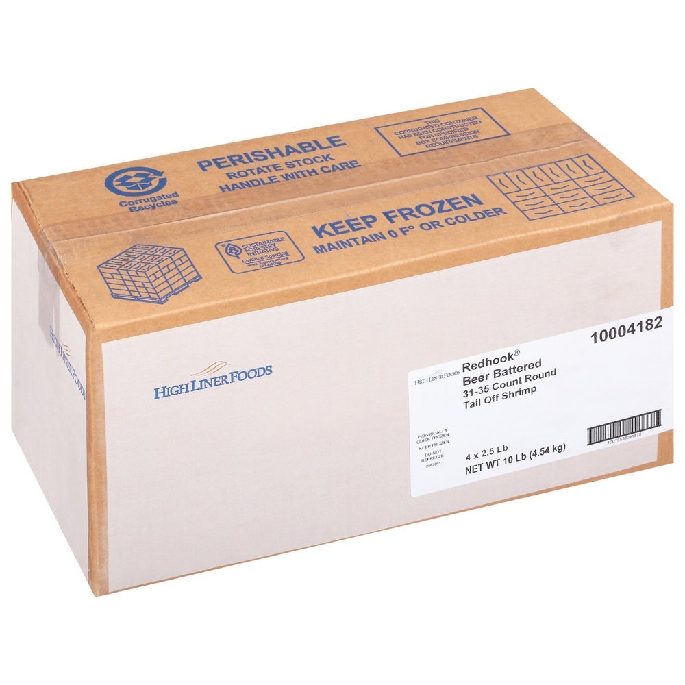 High Liner Foods Redhook Ale Battered Shrimp, Tail-Off, 31-35 Count per Pound, Raw, Frozen, 2.5 Lb Package, 4/Case