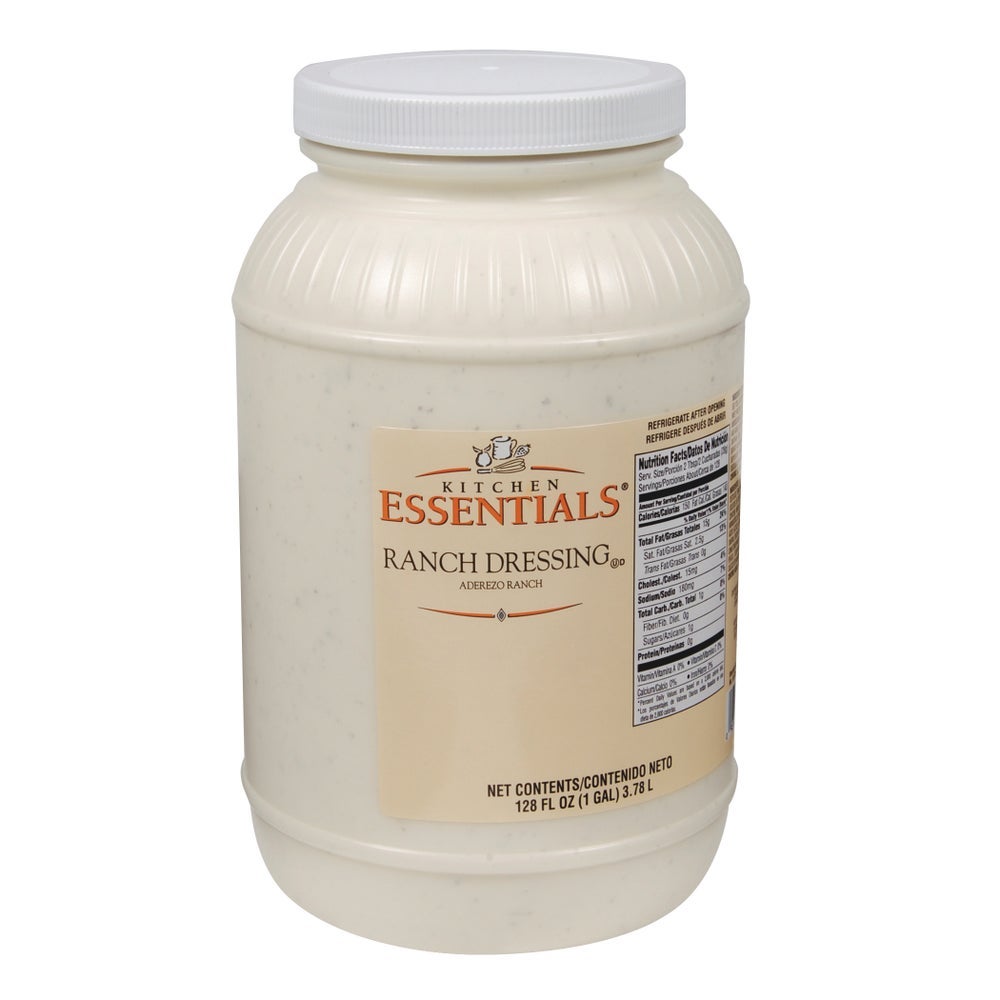 - Kitchen Essentials Ready To Use Ranch Dressing, is a creamy dressing with ranch herbs and a mild, tart and salty flavor. Top on a bed of leafy greens, as a spread for a juicy, grilled chicken sandwich or as a delicious dip for your fried appetizers.