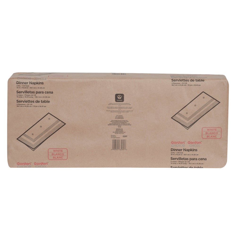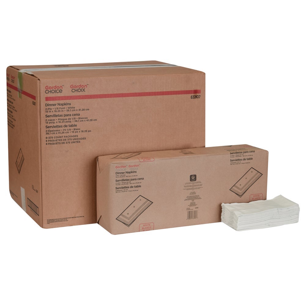 Gordon Choice 2-Ply Embossed Dinner Napkins, White, 1/8 Fold, 15 x 16.25 Inch, 375 Ct Package, 8/Case