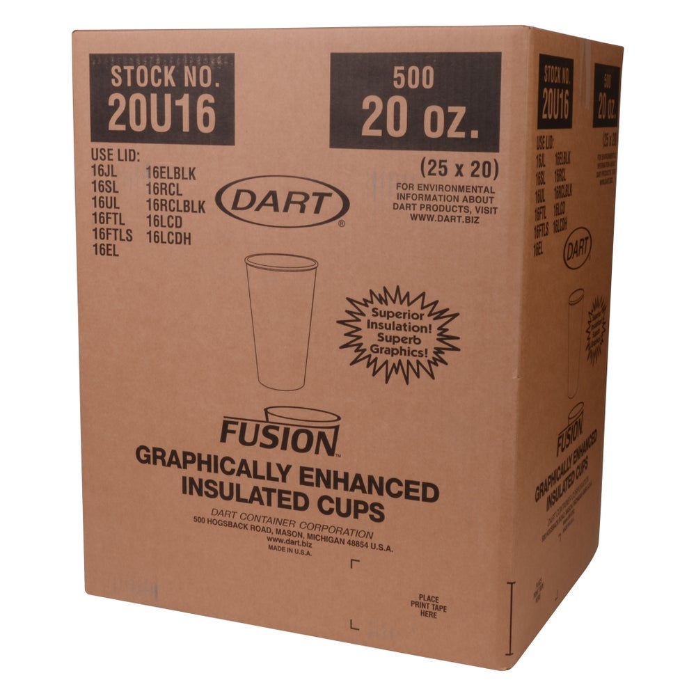 Dart 20 Ounce Foam & Paper Hot & Cold Cups, Escape Design, Polystyrene, 20 Ct Package, 25/Case
