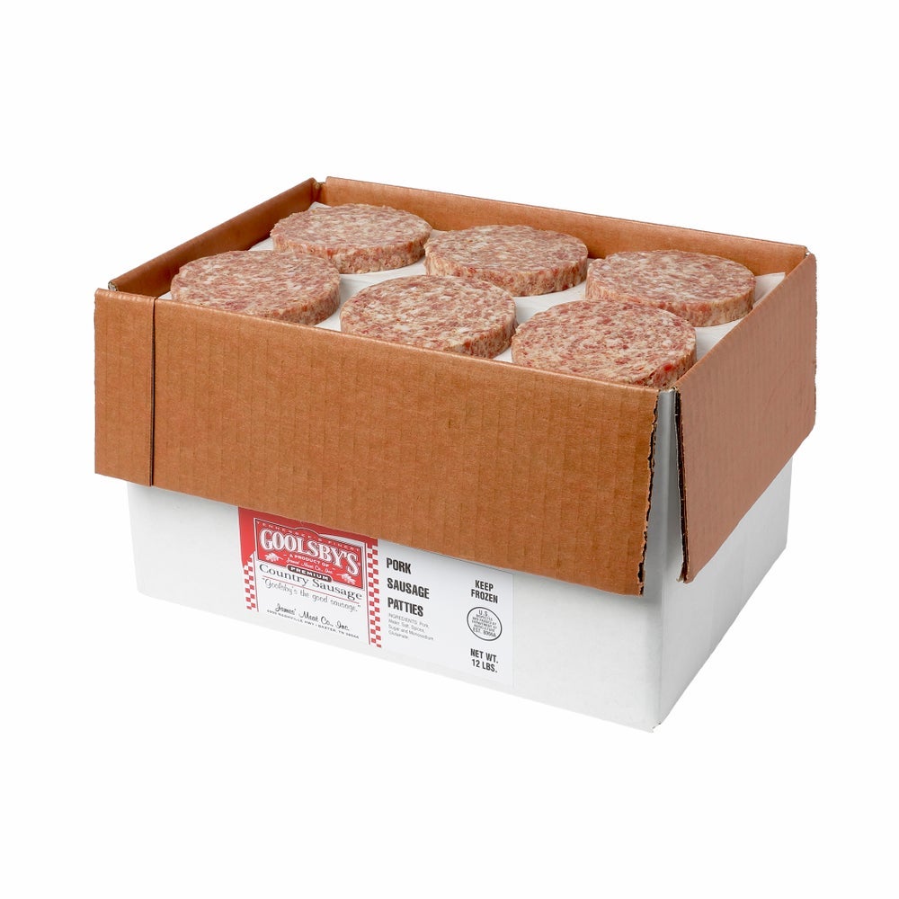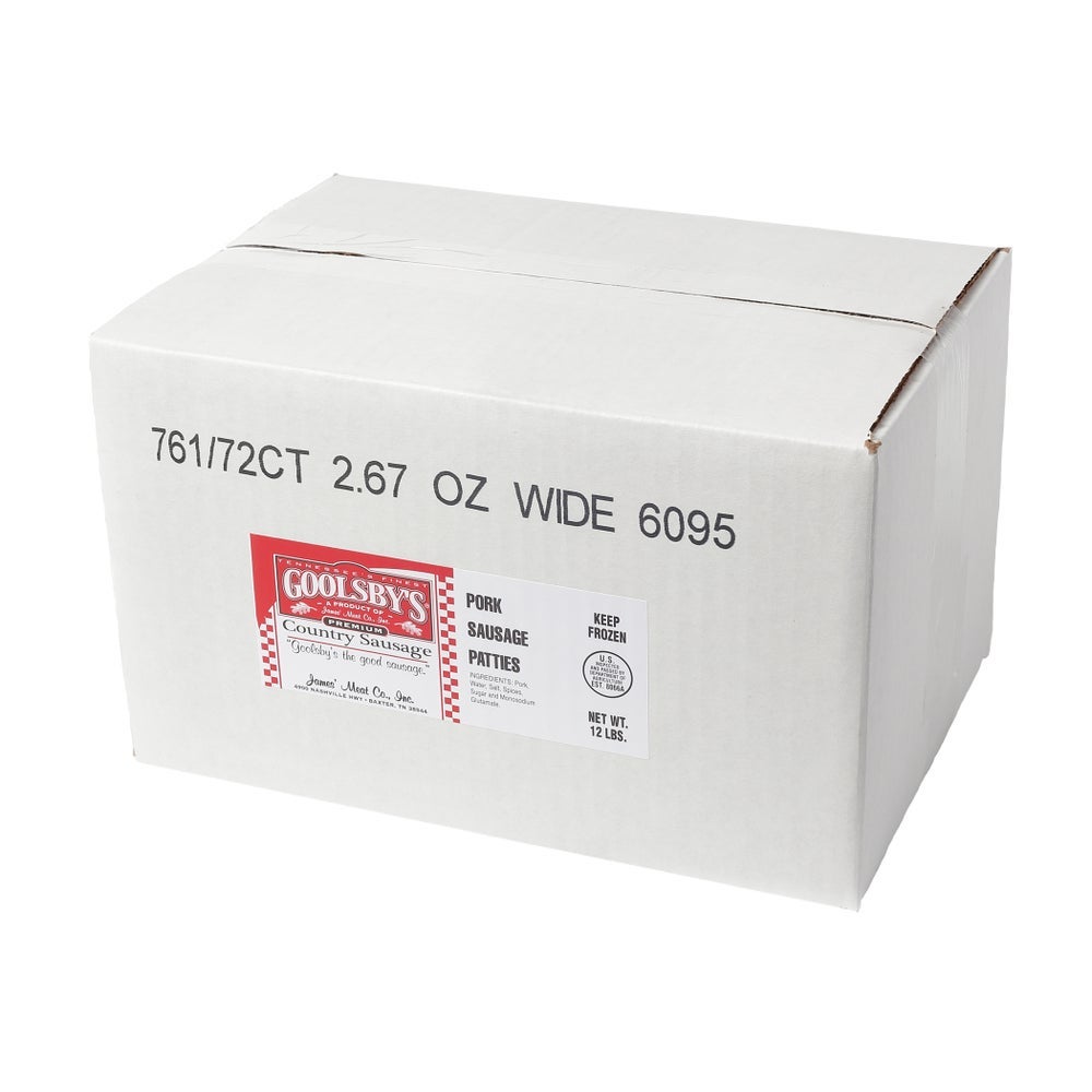 Goolsby's Pork Breakfast Sausage, Patties, 2.7 Ounce, Raw, Frozen, 72 Ct Package, 1/Case