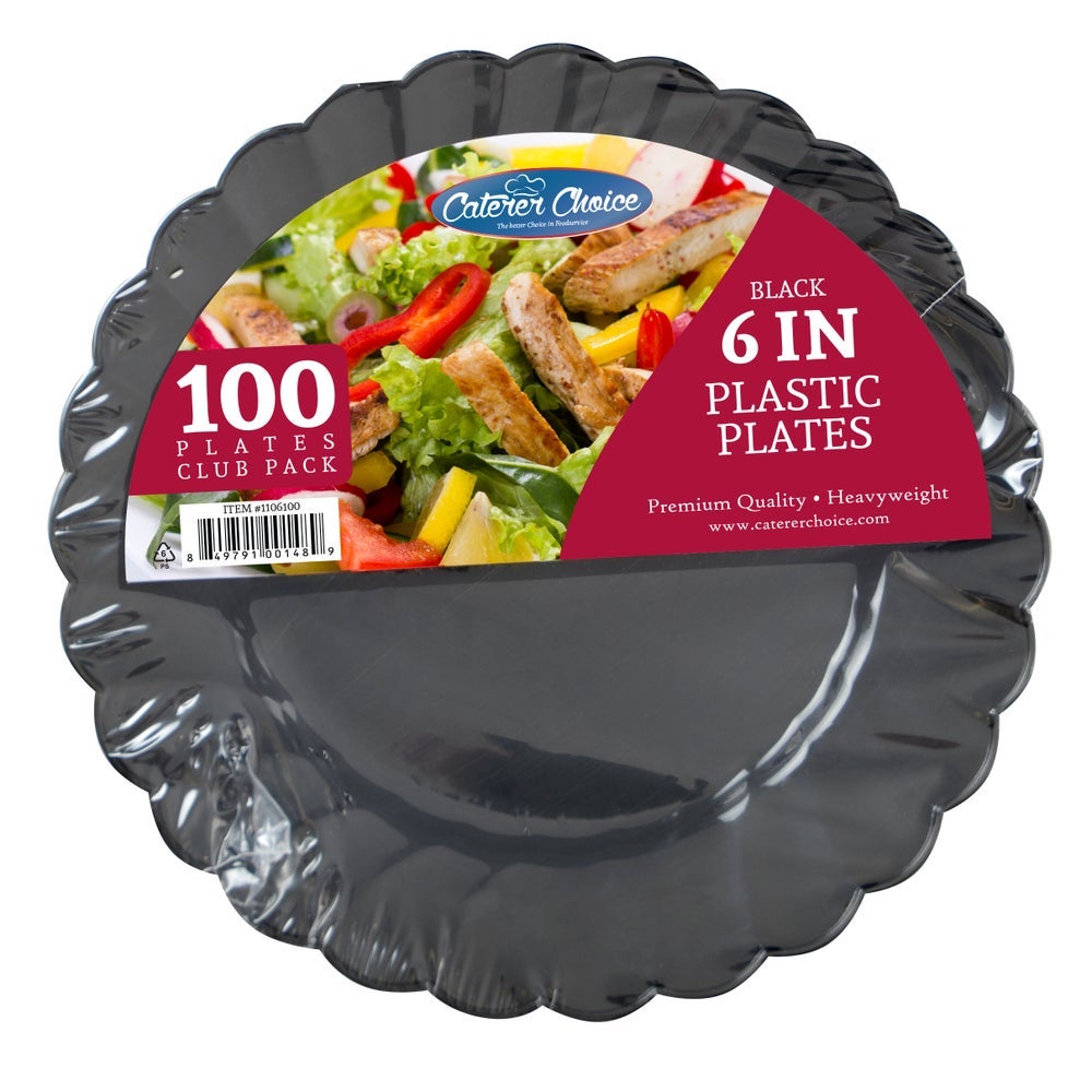 Caterer Choice 6 Inch Heavyweight Plastic Plates, Black, 100 Ct Package, 6/Case