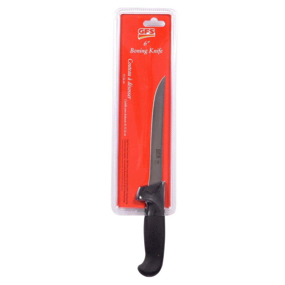 Gordon Choice 6 Inch Stainless Steel Boning Knife, with Black Plastic Handle, 1/Each