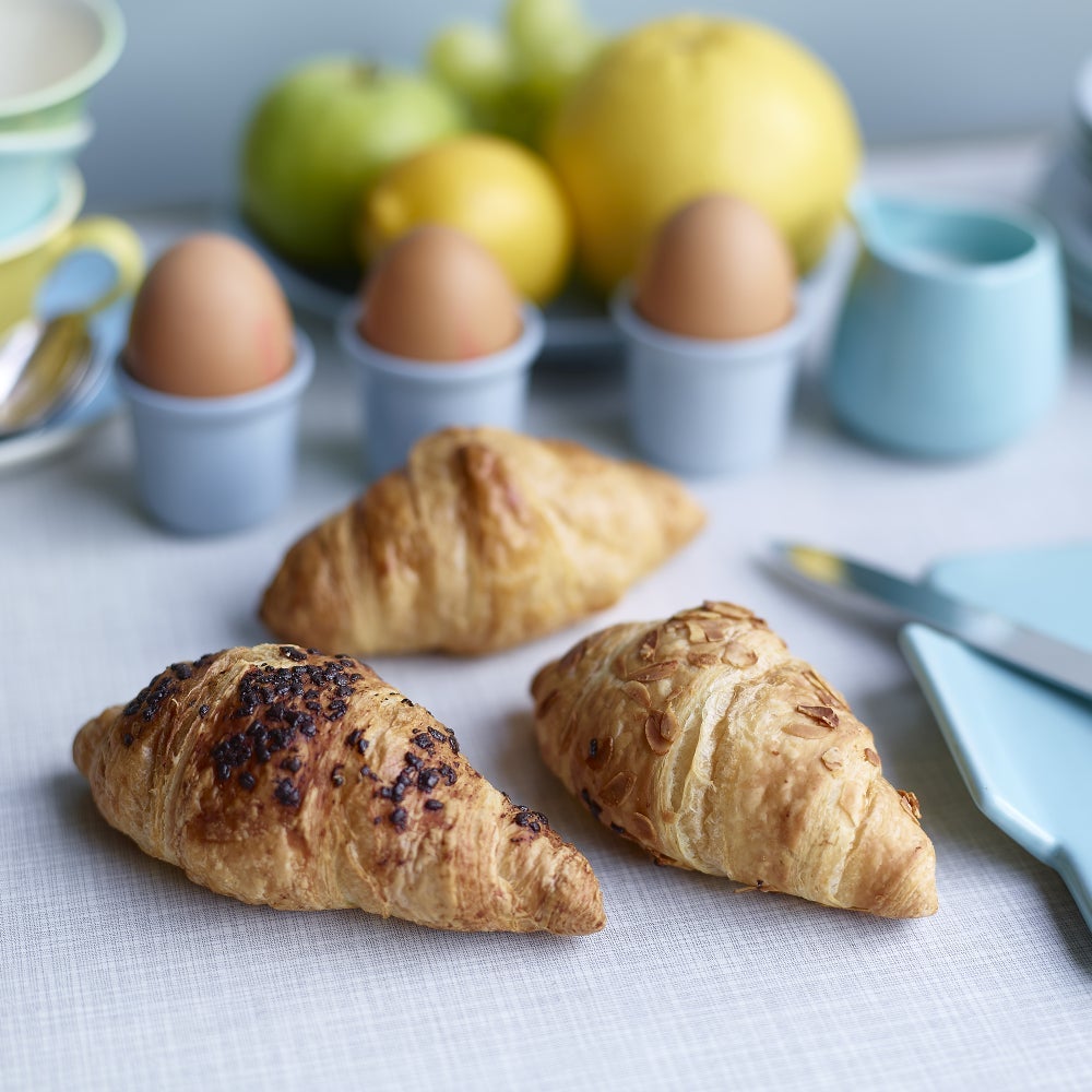 This assortment of classic French pastries features a delicate layering of flaky dough, and a sweetened filling of almonds, apricots, or Belgium chocolate.
