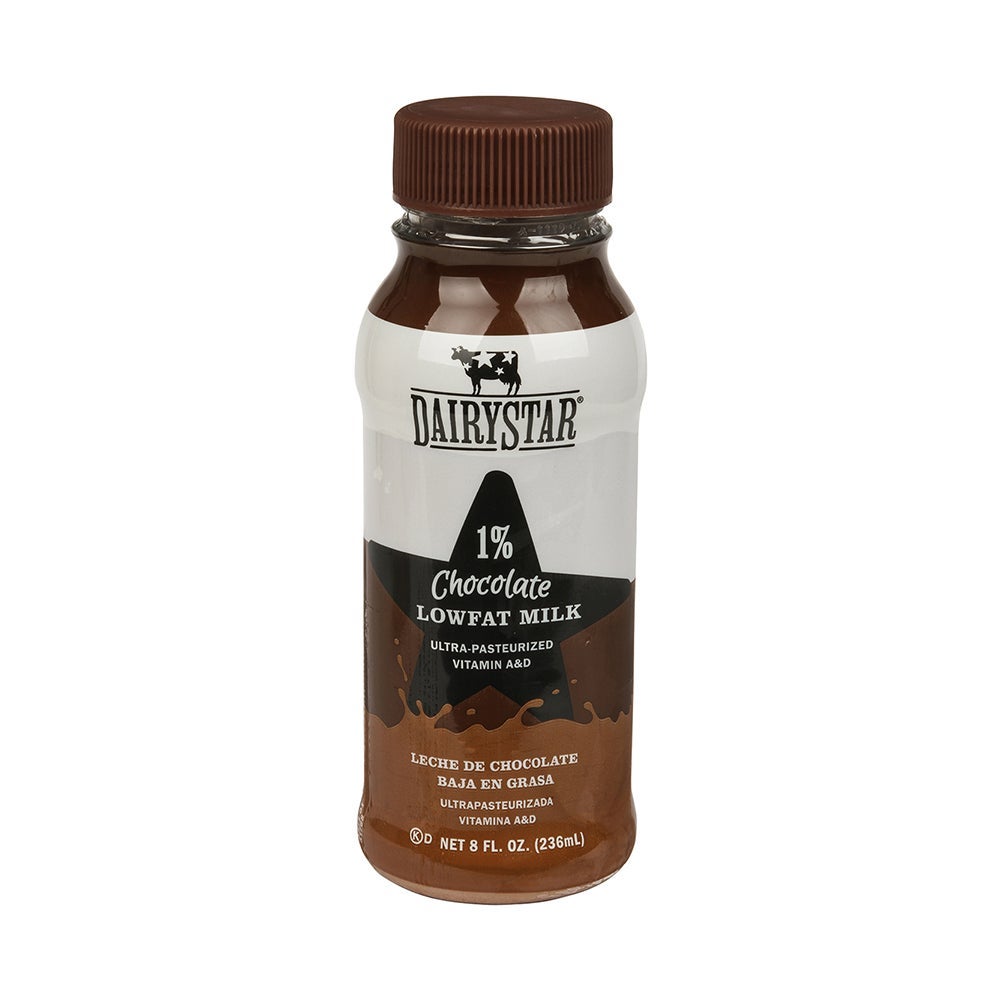 Dairy Star 1% Chocolate Milk, Extended Shelf Life, Refrigerated, 8 Fl Oz Bottle, 24/Case