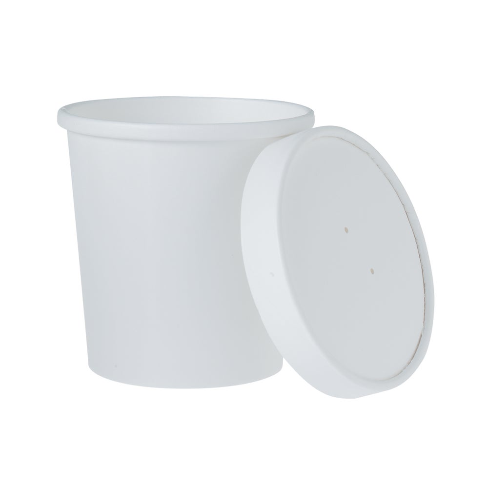 Dart 16 Ounce Coated Paper Soup Containers, White, with Lids, 25 Ct Bag, 10/Case