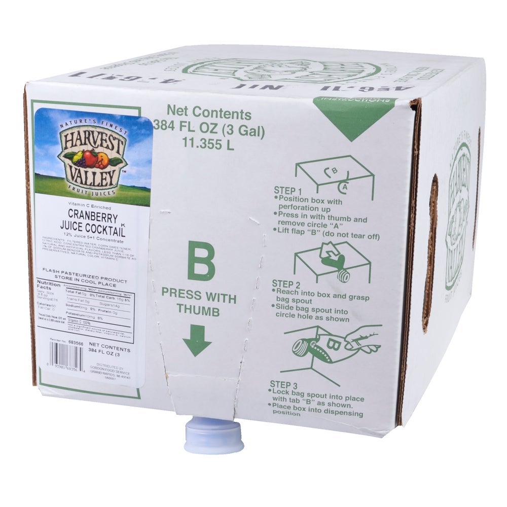 Harvest Valley 12% Cranberry Juice Cocktail, 5 to 1 Ratio, Shelf-Stable, Bag-in-Box, 3 Gal, 1/Box