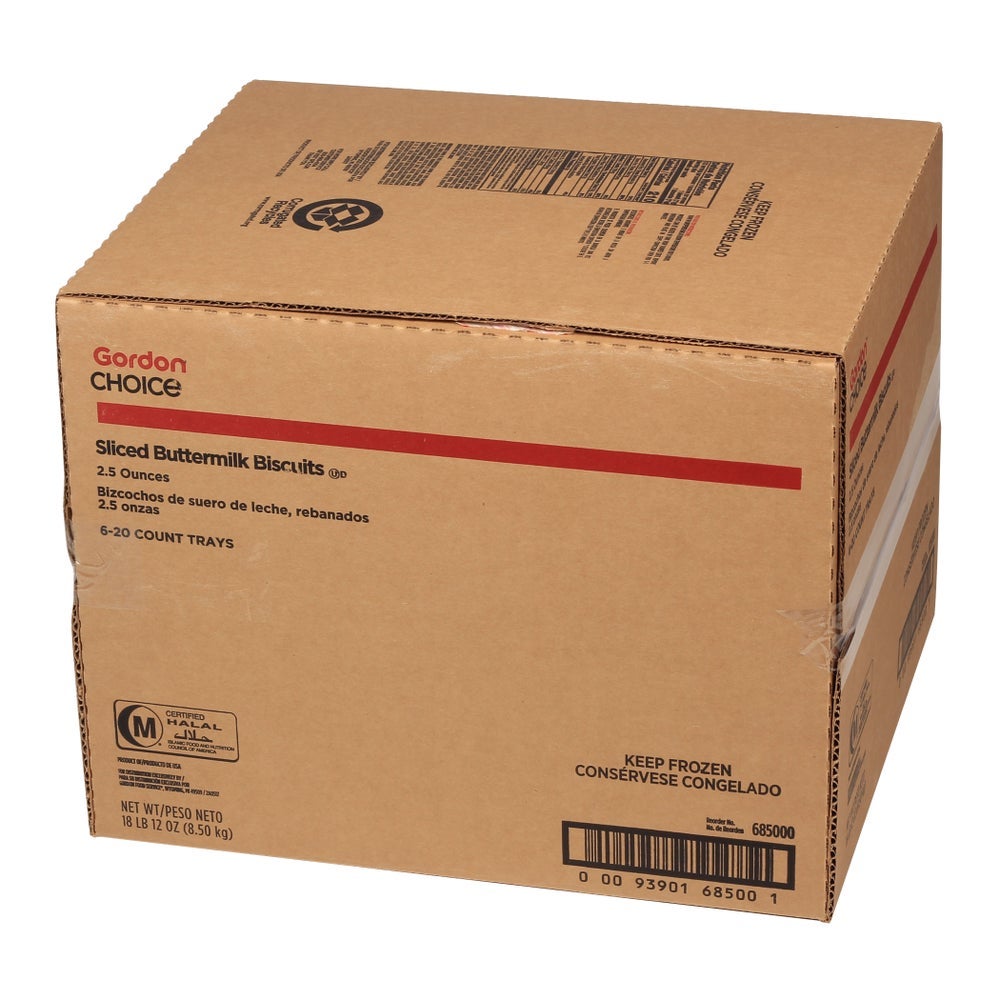 Gordon Choice Sliced Buttermilk Biscuits, Round, Frozen, 2.5 Ounce, 30 Ct Tray, 4/Case