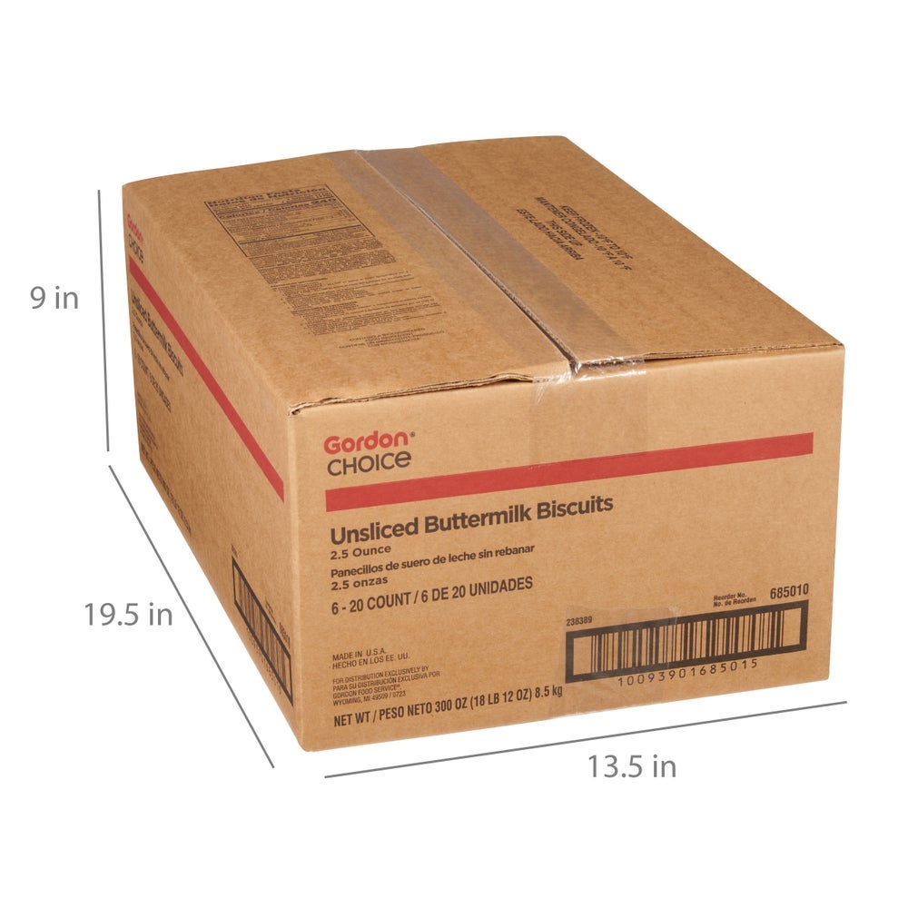 Gordon Choice Unsliced Buttermilk Biscuits, Round, Frozen, 2.5 Ounce, 24 Ct Tray, 5/Case