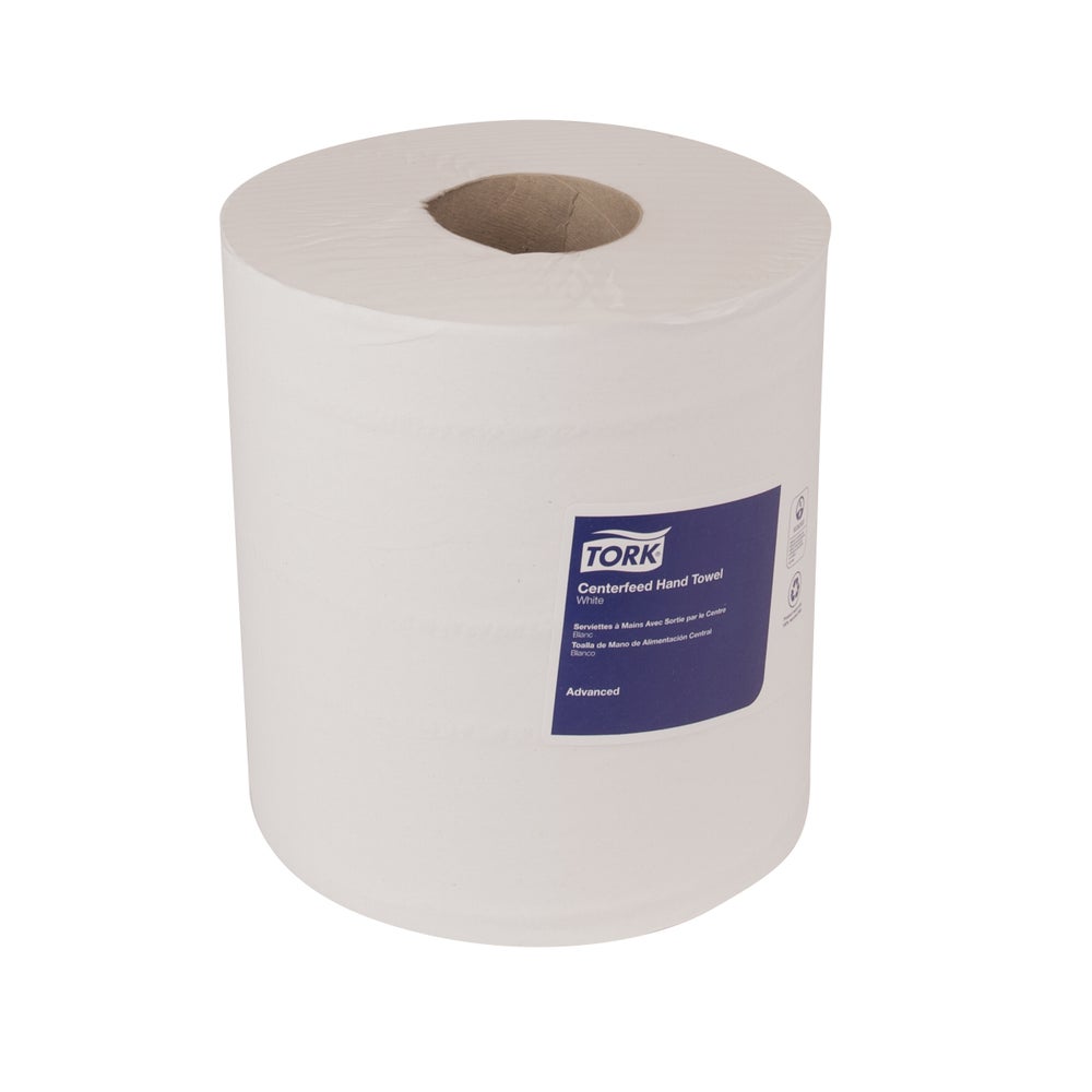 Tork Centerfeed Paper Wiper White M2: Improve hygiene in workshops and kitchens with these centerfeed paper wipers for surface wiping. Users only touch what they take to prevent cross-contamination. Cut down on refills thanks to a high-capacity 1000-sheet roll, saving your employees valuable time and effort. Our paper towels are also designed to reduce costs by saving on unnecessary waste thanks to one-at-a-time dispensing.