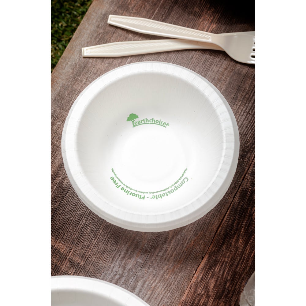 Earthchoice Paper Bowls, Natural White, Round, 12 Ounce, Compostable, 12 Ounce, 750 Ct Package, 1/Case