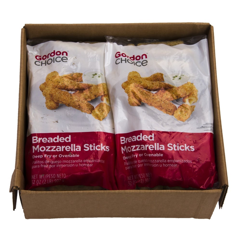 Gordon Choice Breaded Mozzarella Cheese Sticks, 3 Inch, Ovenable, IQF, 2 Lb Bag, 6/Case