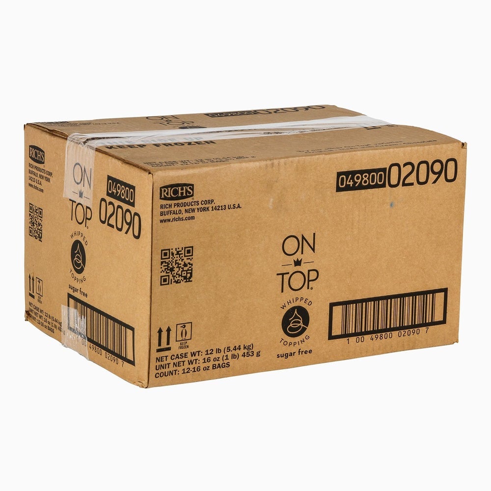 On Top Nondairy Sugar-Free Whipped Topping, Prewhipped, Frozen, Individual Bag, 16 Oz Bag, 12/Case