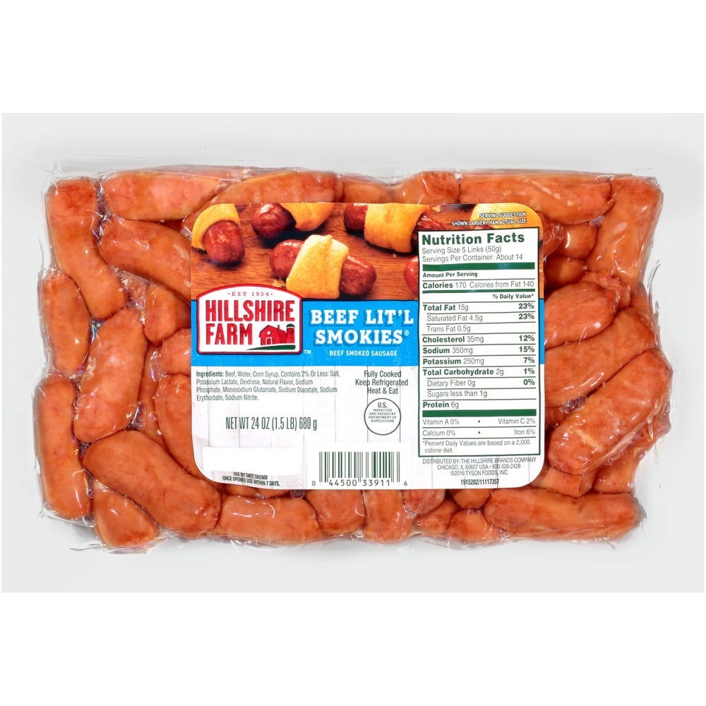 Hillshire Farm Cocktail Fully Cooked Smoked Beef Sausage, 24 Oz Package, 6/Case