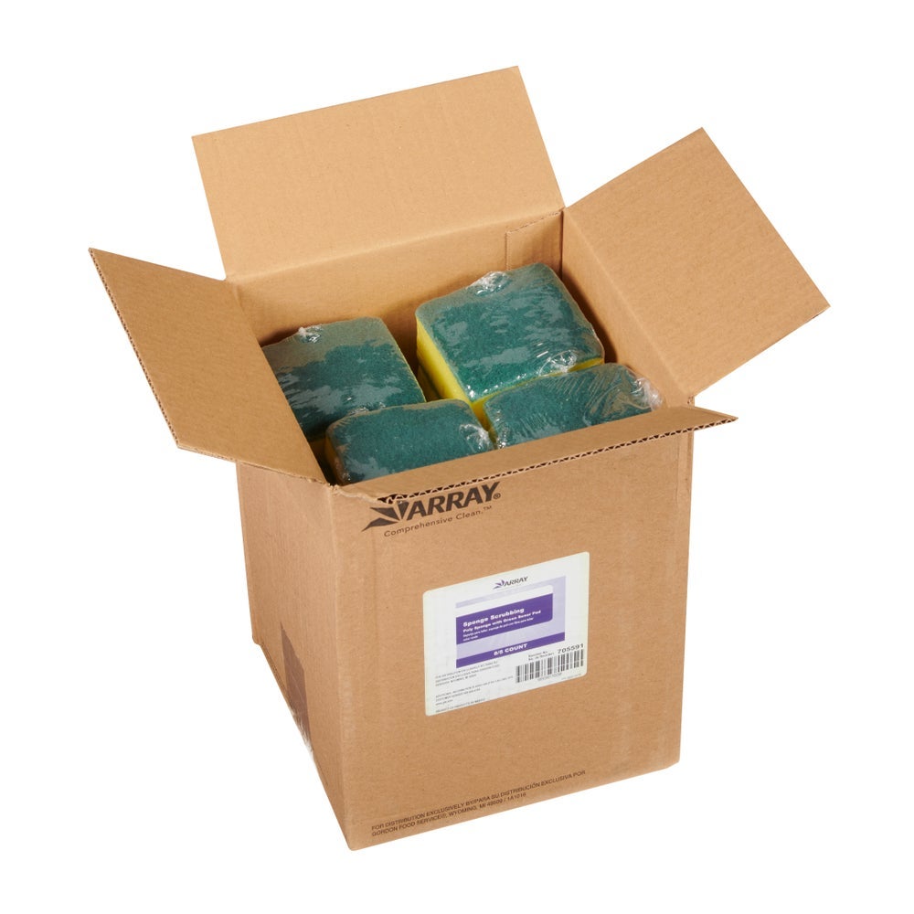 Array General-Purpose Scrub Sponge, Yellow & Green, 3.5 x 3.5 Inch, 5 Ct Package, 8/Case