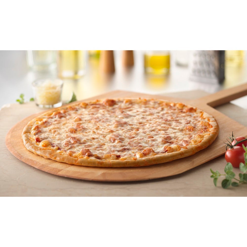 This 16-inch thin crust cheese pizza can be customized with toppings of your choice or thawed, topped, folded and made into stromboli or pizza rolls.