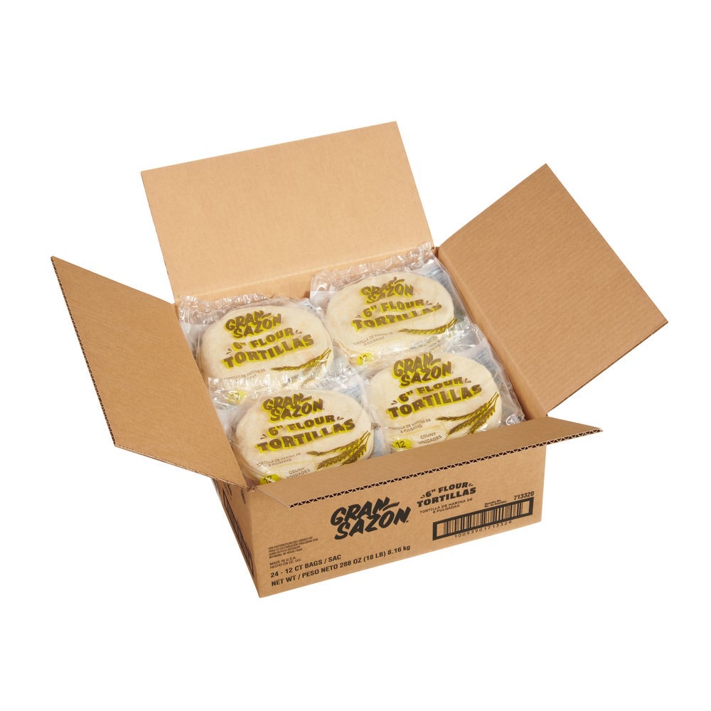 Gran Sazon 6 Inch Pressed Flour Tortillas, Shelf-Stable, 12 Ct Package, 24/Case