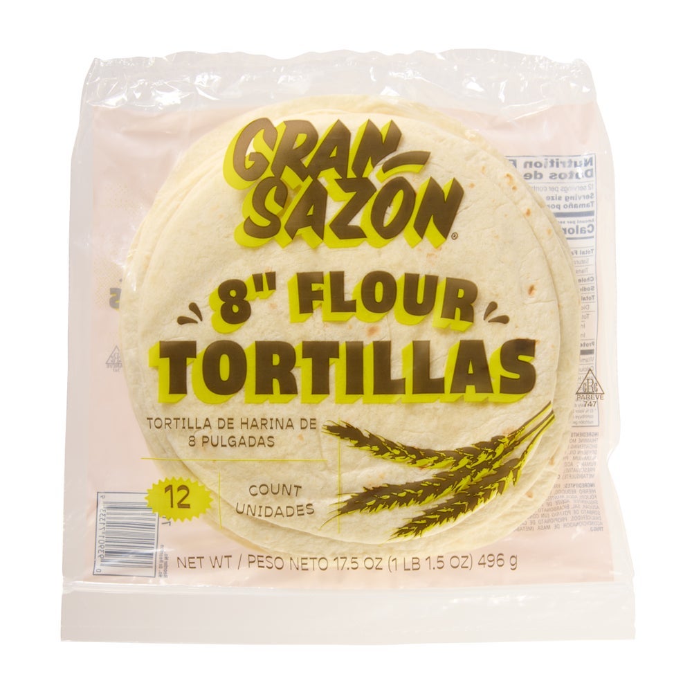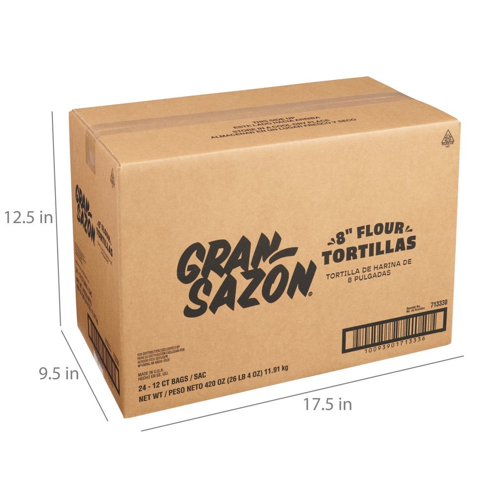 Gran Sazon 8 Inch Pressed Flour Tortillas, Shelf-Stable, 12 Ct Package, 24/Case