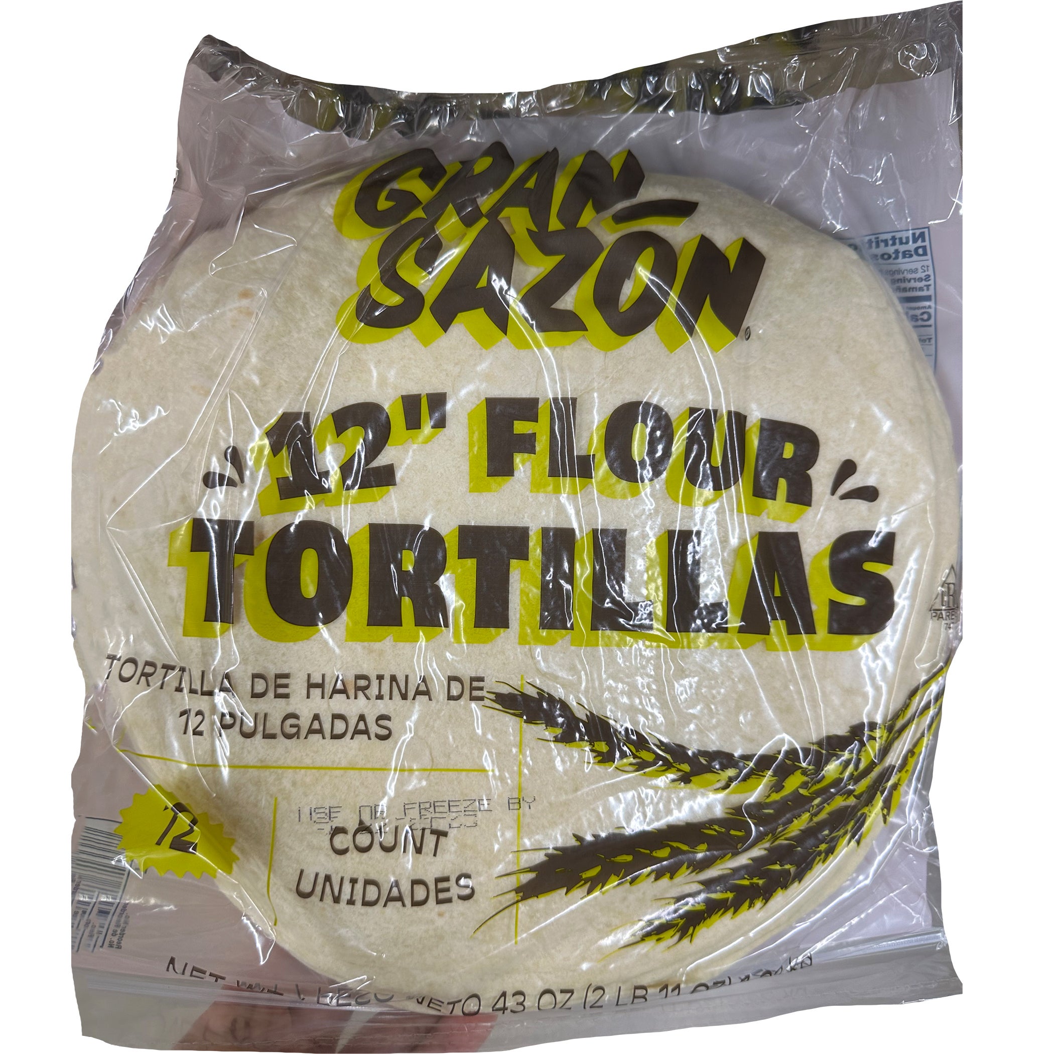 Gran Sazon 12 Inch Pressed Flour Tortillas, Shelf-Stable, 12 Ct Package, 12/Case