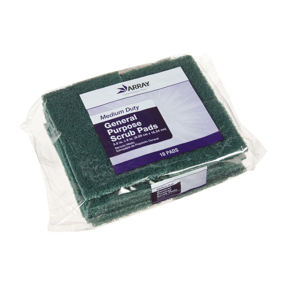 Array General-Purpose Scrub Pads, Green, 3.5 x 6 Inch, 10 Ct Package, 6/Case