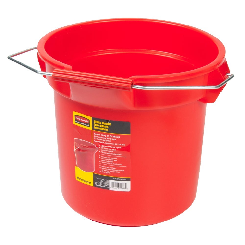 Rubbermaid Utility Bucket, 14 Quart, Red, 1/Each