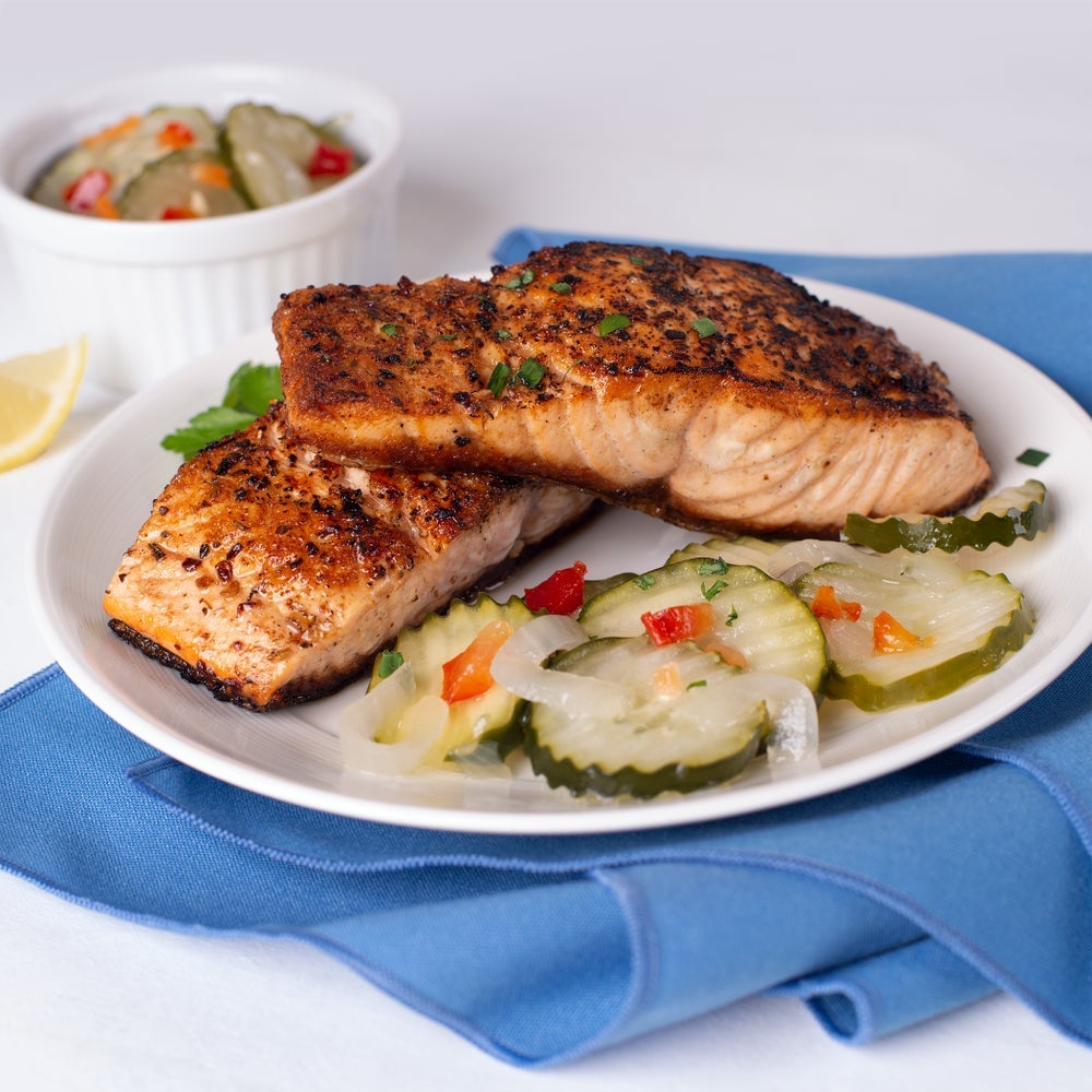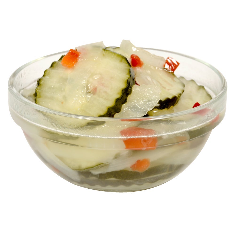 - Fresh, pre-made cucumber salad is an easy and convenient item to add to the menu. Crinkle-cut cucumbers, onions, and vibrant red peppers are combined with a vinegar and oil dressing to create this quality, ready-to-serve salad.