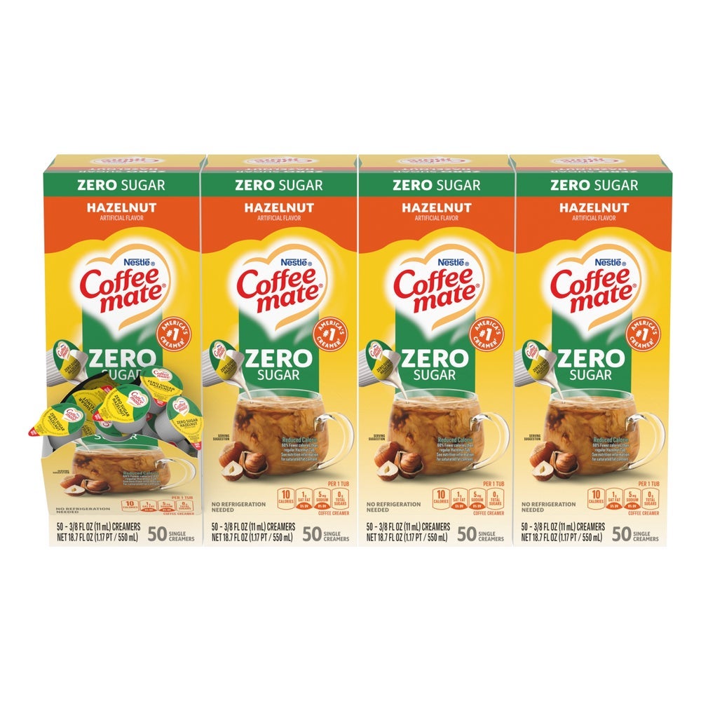 Coffee Mate Hazelnut Sugar Free Liquid Creamer Cups, Shelf-Stable, Single Serve, 50 Ct Box, 4/Case