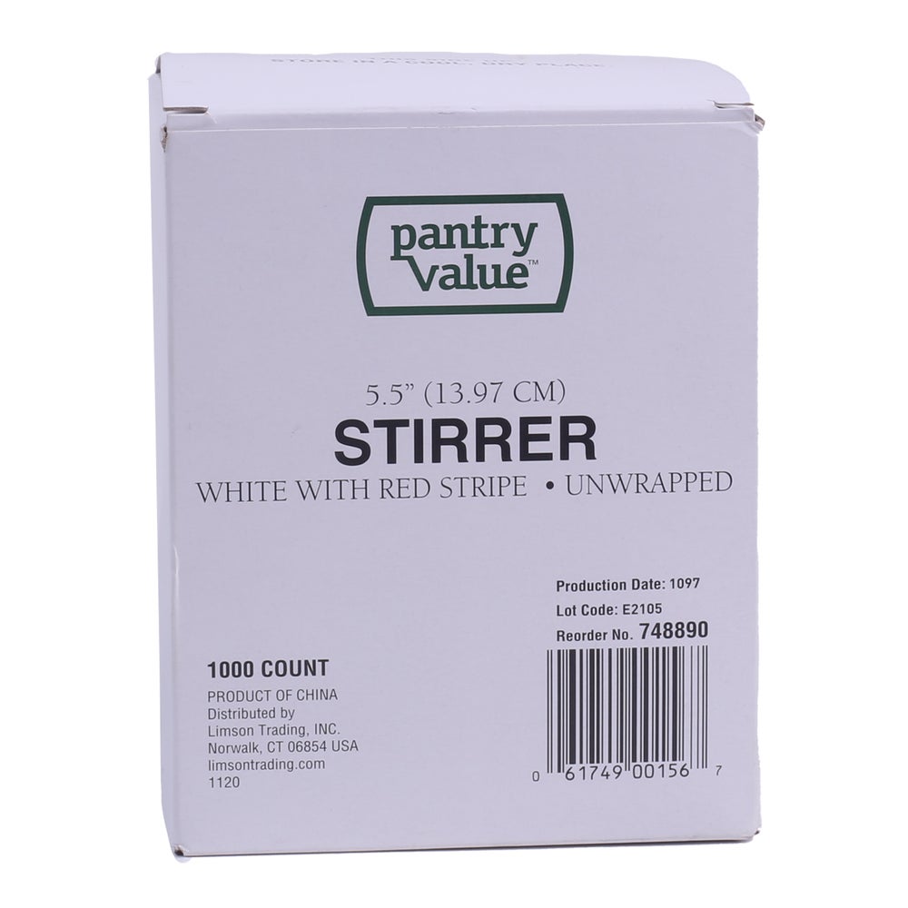 Pantry Value 5.5 Inch Plastic Sipper Hi-Ball Stirrers, White & Red, Polypropylene, 1000 Ct Box, 10/Case