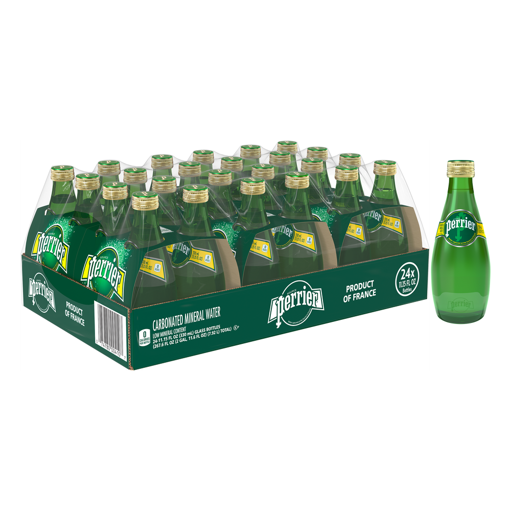Perrier Natural Sparkling Mineral Water, Glass, 11 Fl Oz Bottle, 24/Case