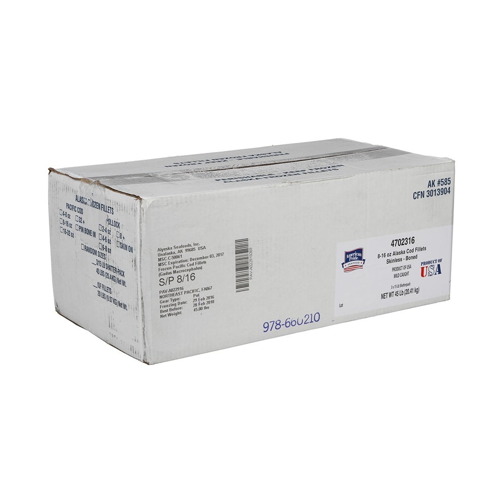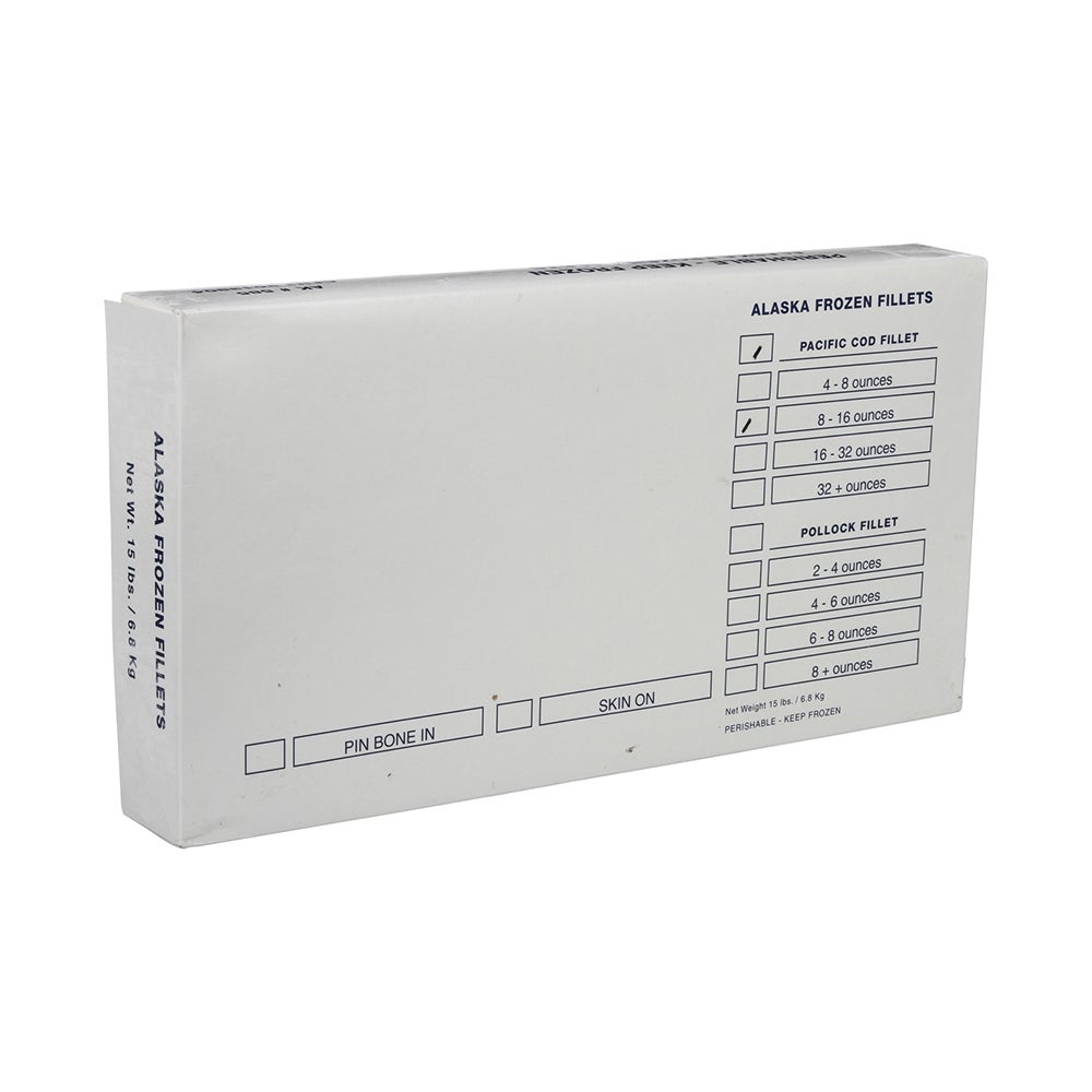 Packer Label North Pacific Alaskan Cod Fillets, Wild-Caught, Boneless Skinless, 8-16 Ounce, Raw, IQF Once-Frozen Shatter-Pack, 15 Lb Box, 3/Case