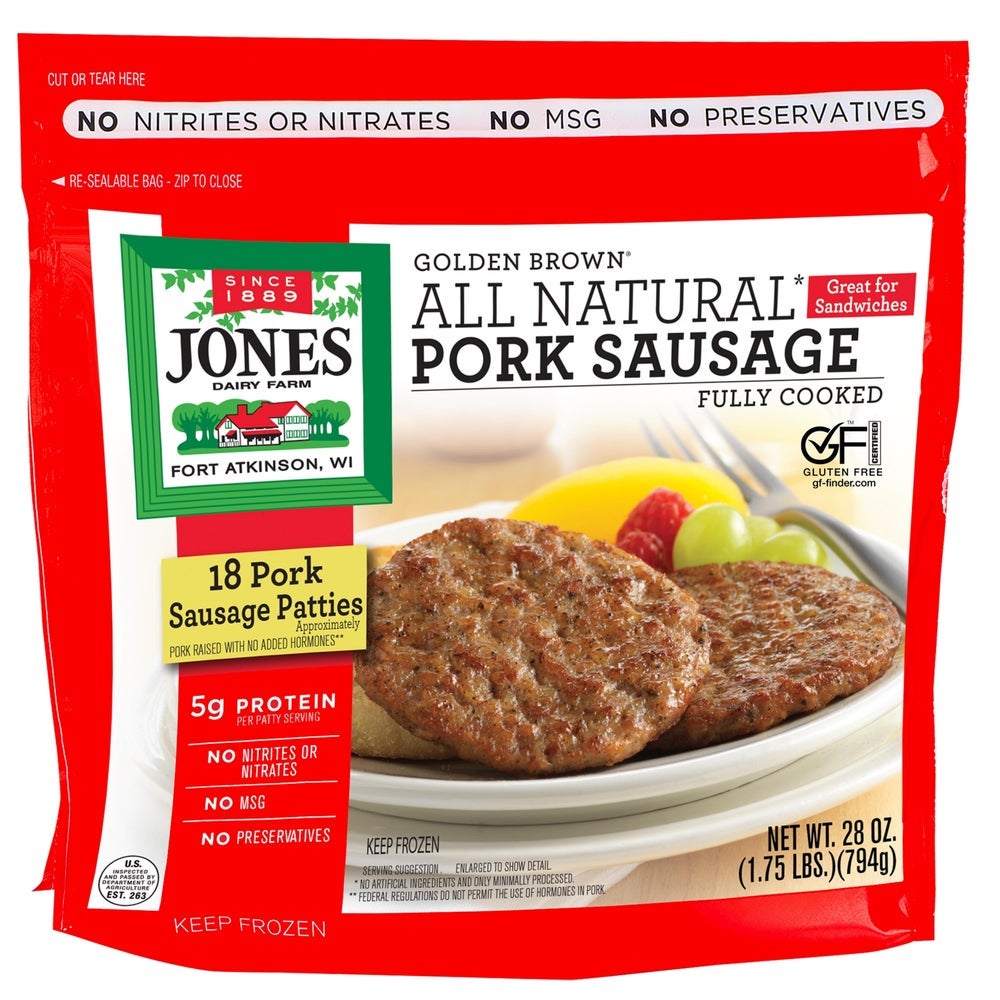 Jones Dairy Farm Pork Breakfast Sausage, Patties, Cooked, 28 Oz Bag, 8/Case