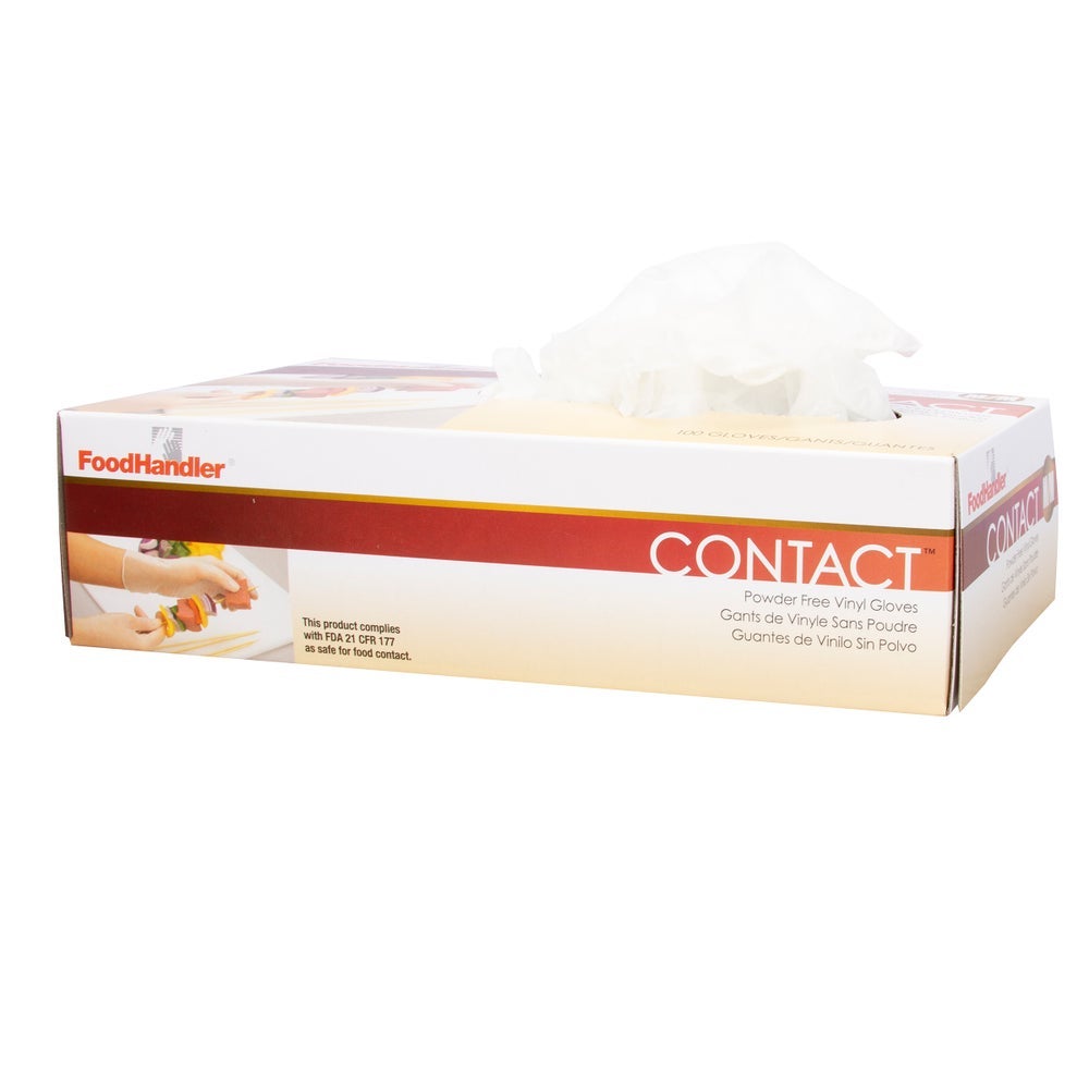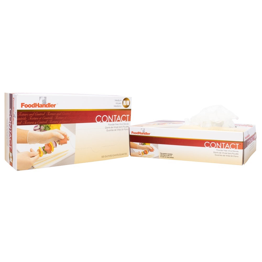 FoodHandler Contact Medium Powder-Free Vinyl Gloves, Clear, 100 Ct Box, 4/Case