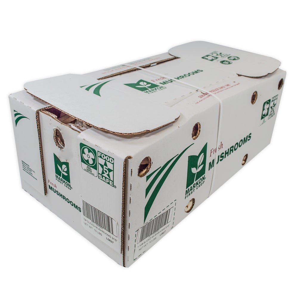 Markon First Crop 3/16 Inch Sliced Mushrooms, Fresh Cut, 10 Lb Box, 1/Case