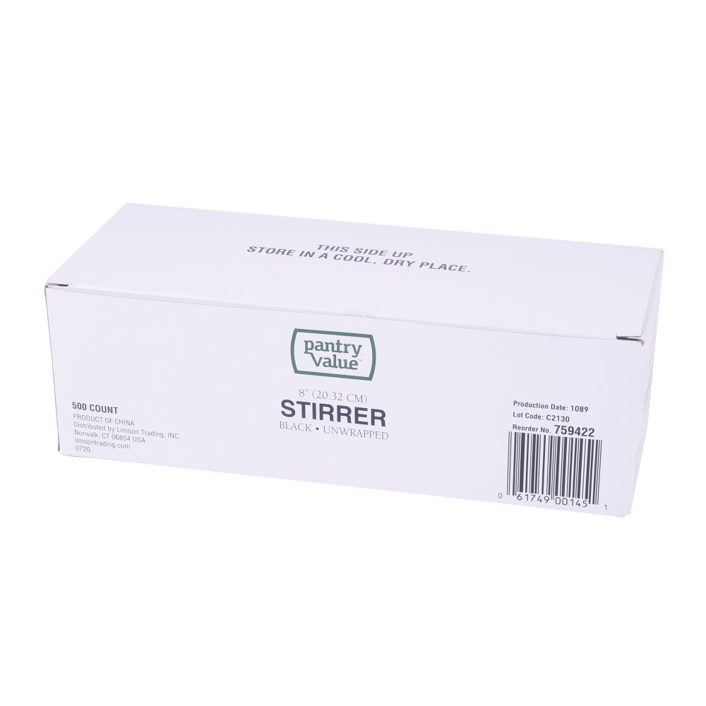 Pantry Value 7.5 Inch Plastic Sipper Hi-Ball Stirrers, Black, Polypropylene, 500 Ct Package, 10/Case