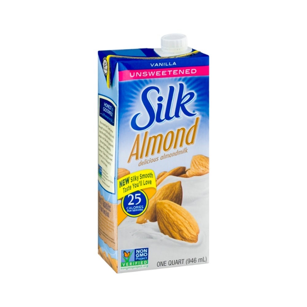 Silk Lactose Free Unsweetened Vanilla Almond Milk, Shelf-Stable, 32 Fl Oz Carton, 6/Case