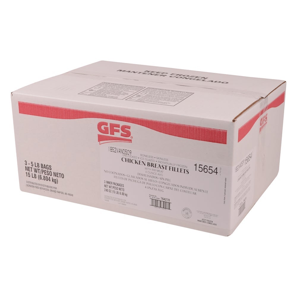 Gordon Choice Boneless Skinless Chicken Breast Fillets, 4 Ounce, Raw, Individually Frozen Ice Glazed, 5 Lb Bag, 3/Case
