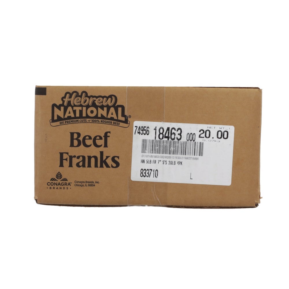 Hebrew National Kosher Beef Franks, 7 Inch, 5 Count per Pound, Fresh, 5 Lb Package, 4/Case