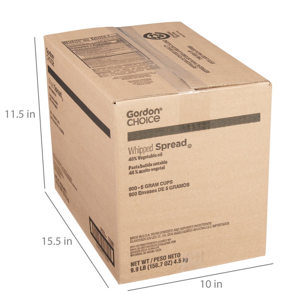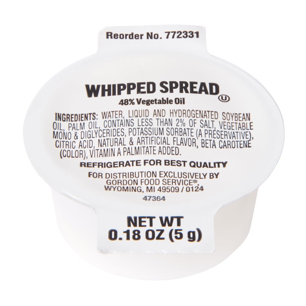 - Perfect for take-out and front-of-house uses, these small cups of 48% Vegetable Oil Whipped Spread will let guests add just the right amount of light buttery flavor to their favorite items.