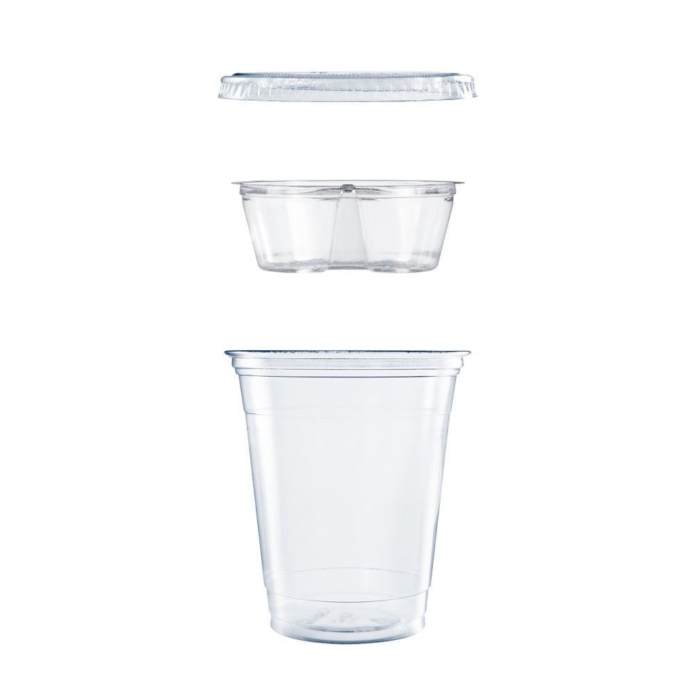 Dart 12 Ounce Plastic Parfait Cups, 3.5 Ounce Insert Compartment, with Lid, 500 Ct Bag, 1/Case