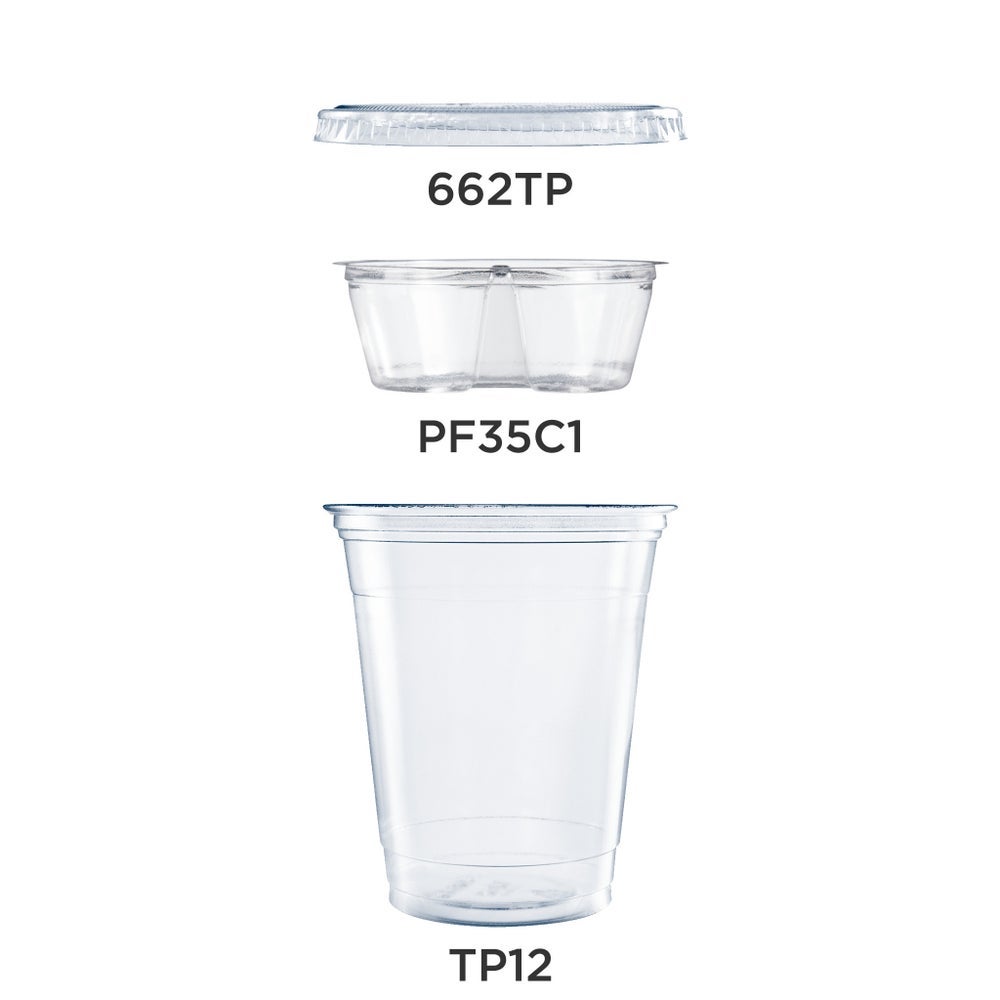 These Dart brand of 12-ounce, plastic parfait cups have a 3.5-ounce insert compartment with a Clean Lift tab that decreases the mess when using the parfait cup.