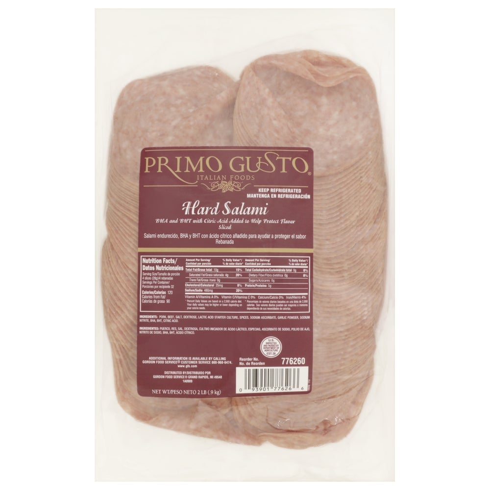 Primo Gusto Hard Salami, 0.25 Ounce Slices, Fresh, 2 Lb Package, 5/Case