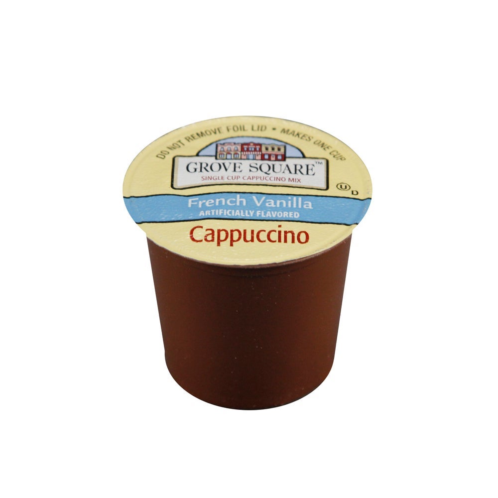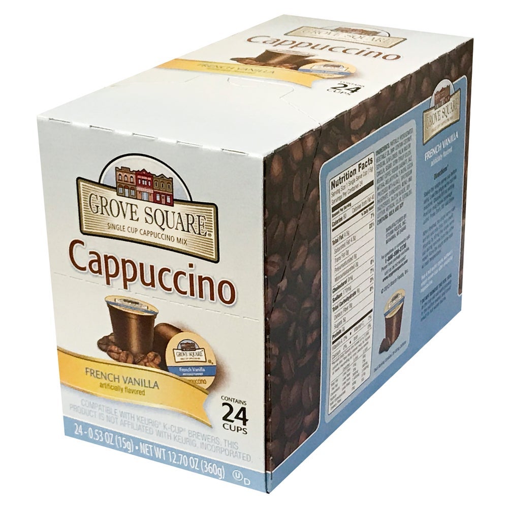 Grove Square French Vanilla Single-Serve Cappuccino Mix, Cups, Compatible with Keurig Brewer, 24 Ct Box, 4/Case