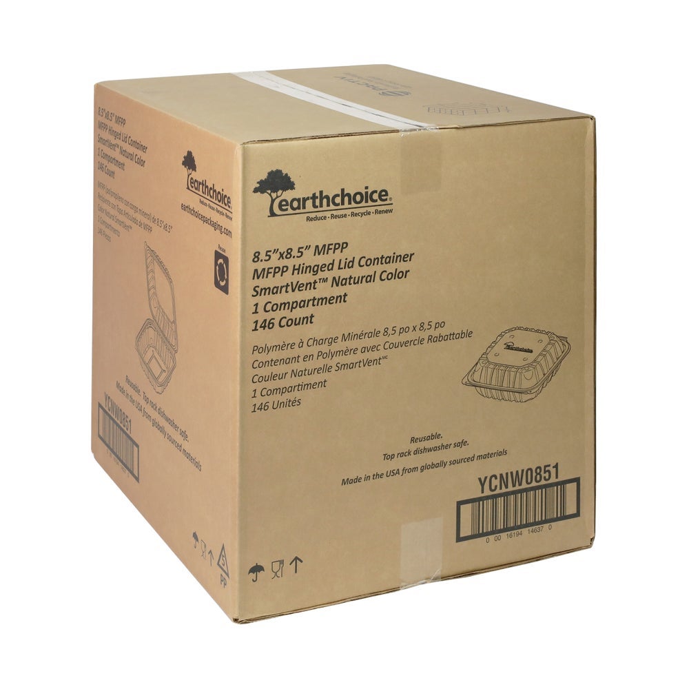 Earthchoice 8.5 x 8.5 Inch 1-Compartment Containers, White, With Hinged Lid, Optional Venting, Mineral Filled Polypropylene, 73 Ct Bag, 2/Case