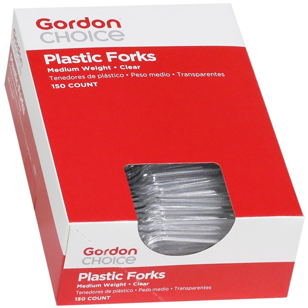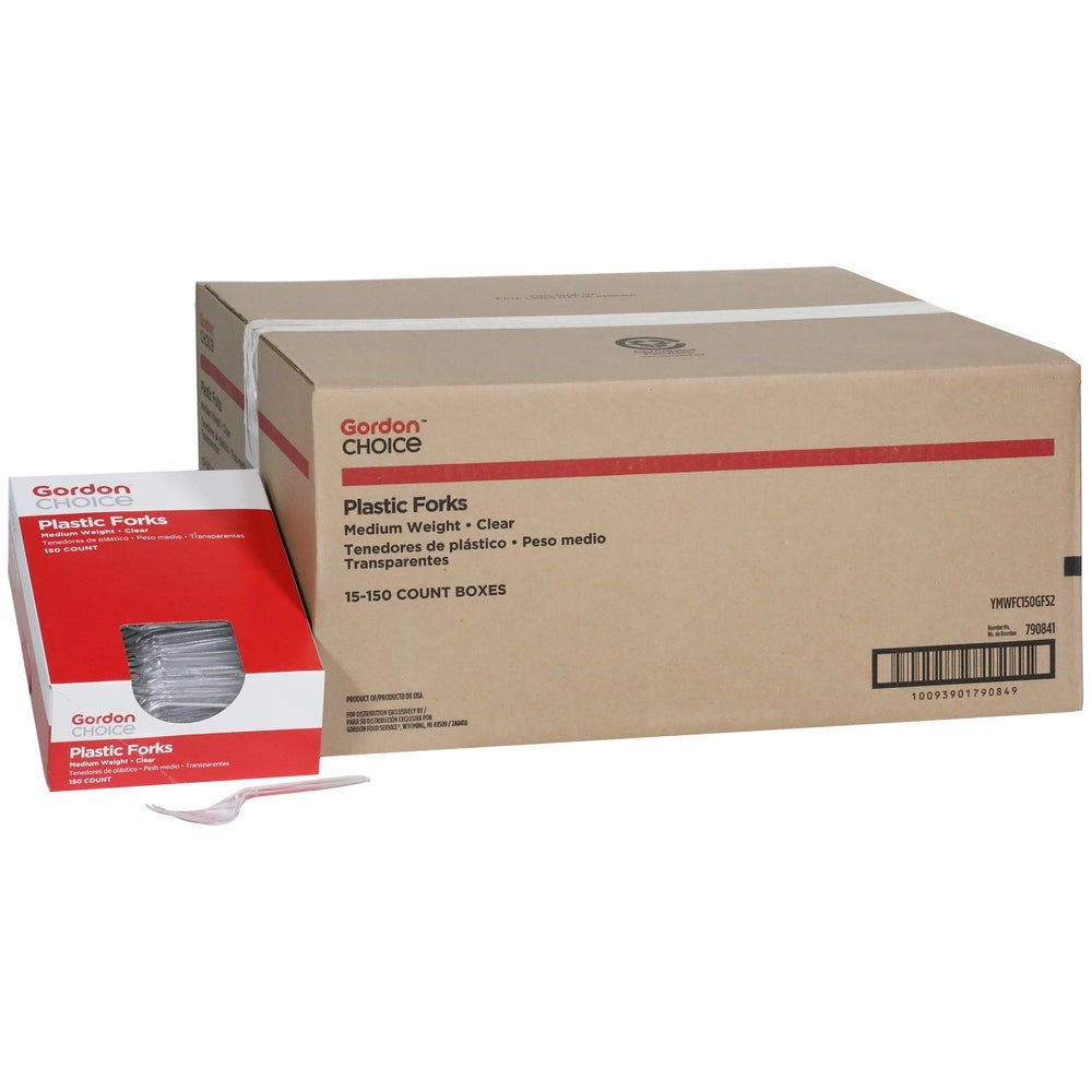 Gordon Choice Medium-Heavyweight Plastic Forks, Clear, with Medium-Length Handles, Polystyrene, 150 Ct Box, 15/Case