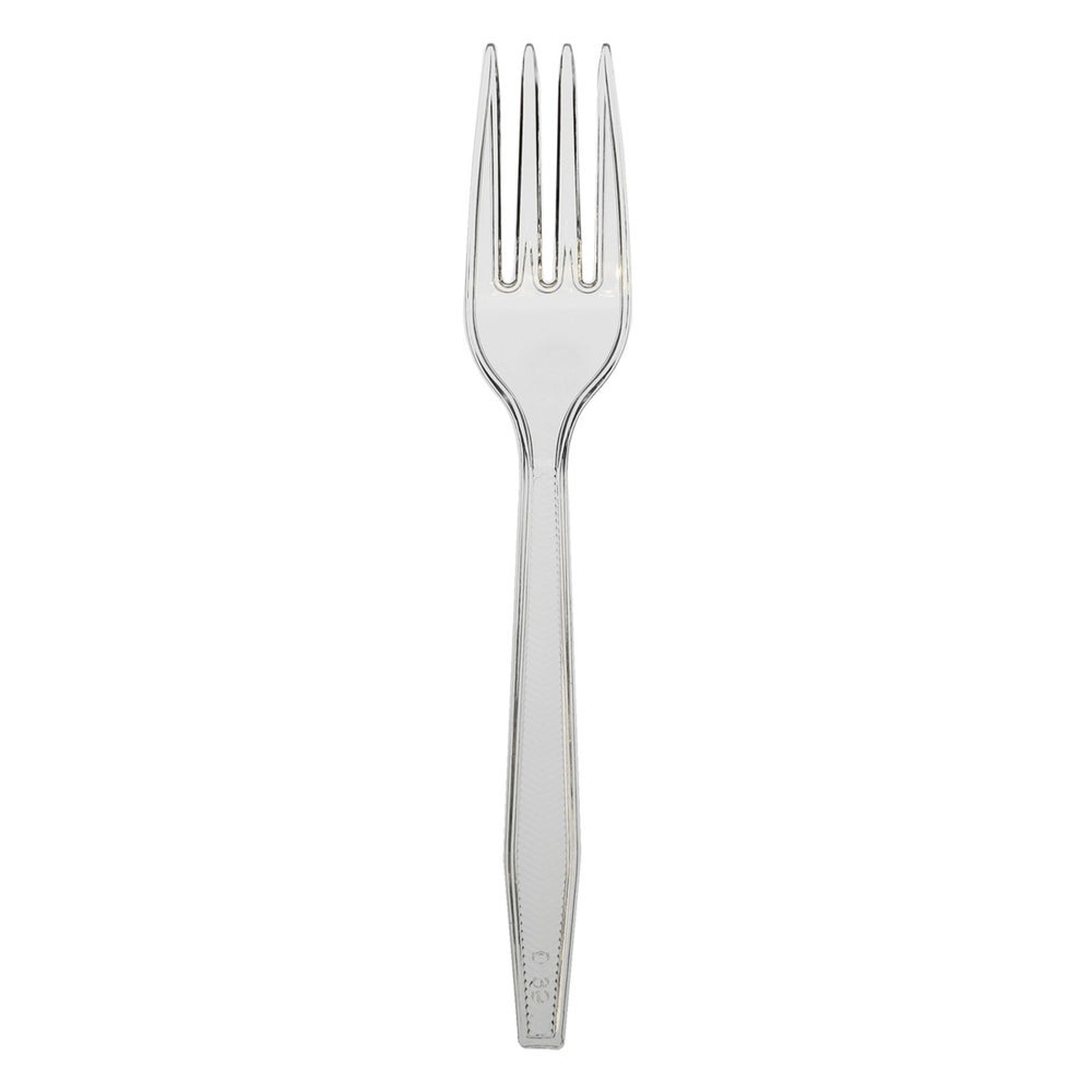 - These clear, medium-heavyweight plastic forks are perfect for catering and entertaining, and they stand up to heavy foods. The forks look like permanent-ware and have the cost and convenience of a disposable item.