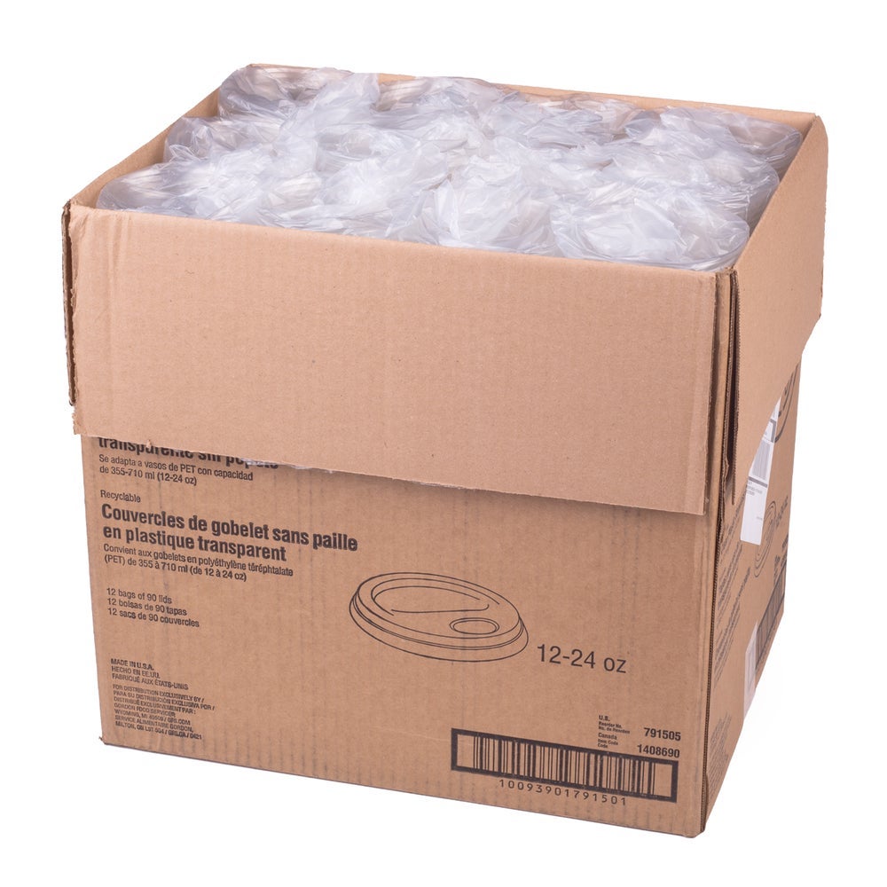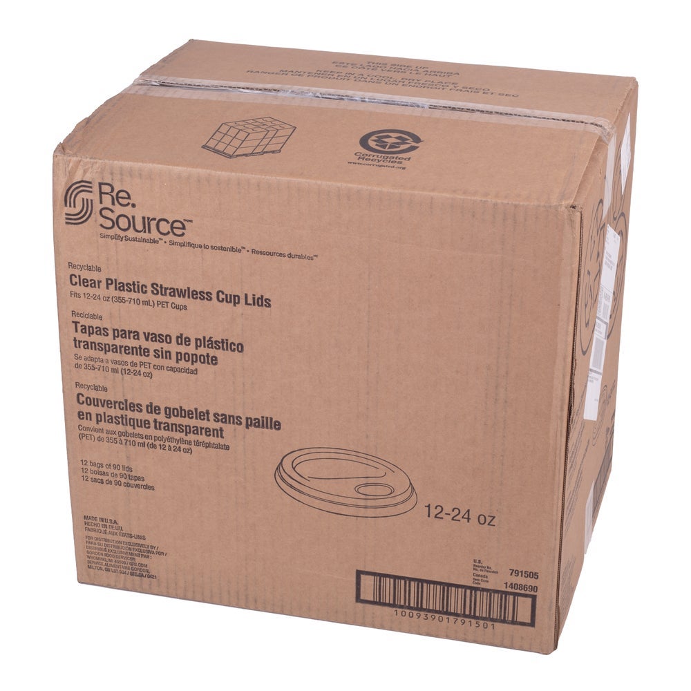 Re.Source Strawless Lids, Clear, RPET, Recyclable, for 12/16/20/24 Ounce Cups, 90 Ct Bag, 12/Case