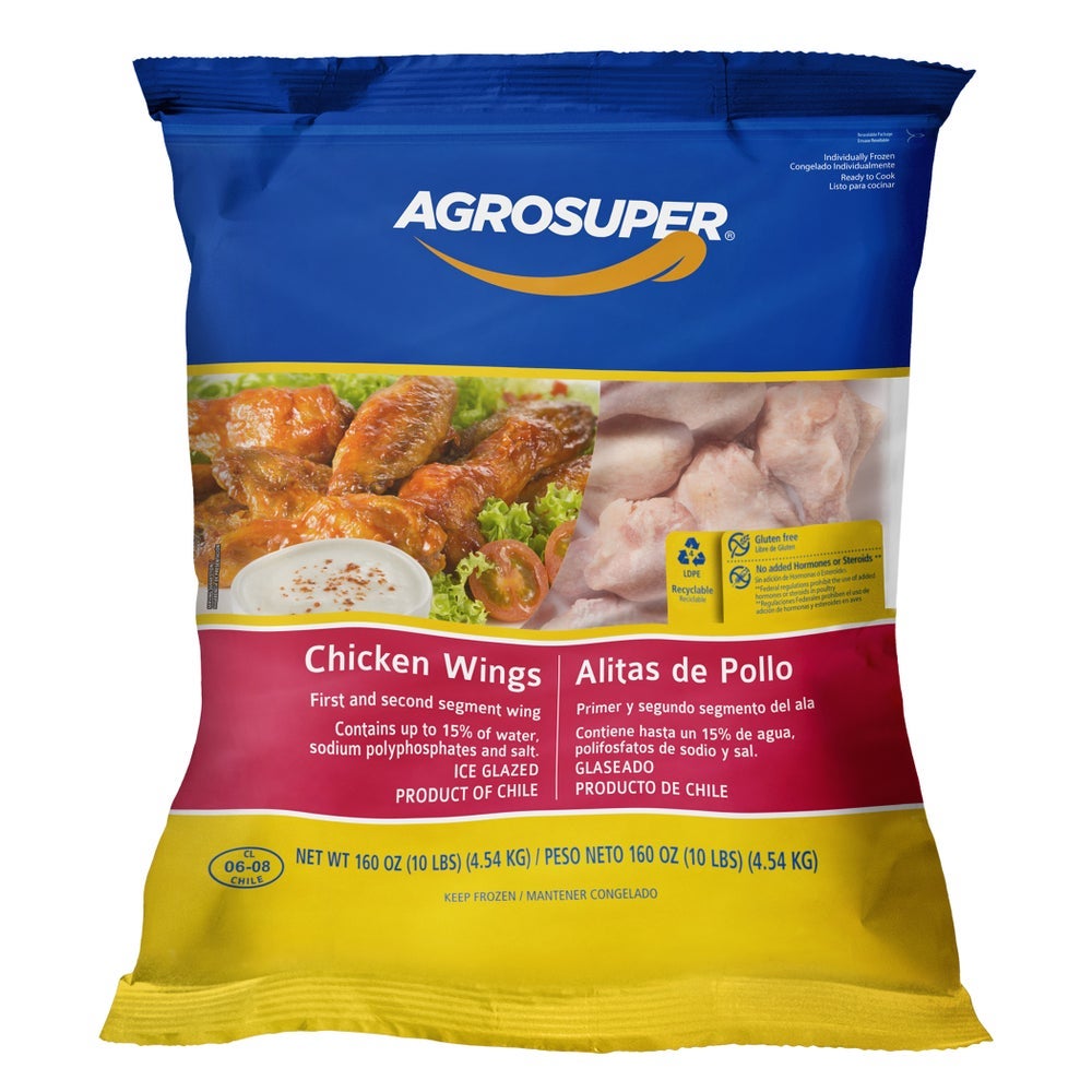 These Agro brand of super bone-in chicken wings are an alternative during "wing season" as an additional offering to hedge offerings of other wings. Processed raw and frozen, these wings are ready to thaw and prepare in a special barbeque sauce or breading.