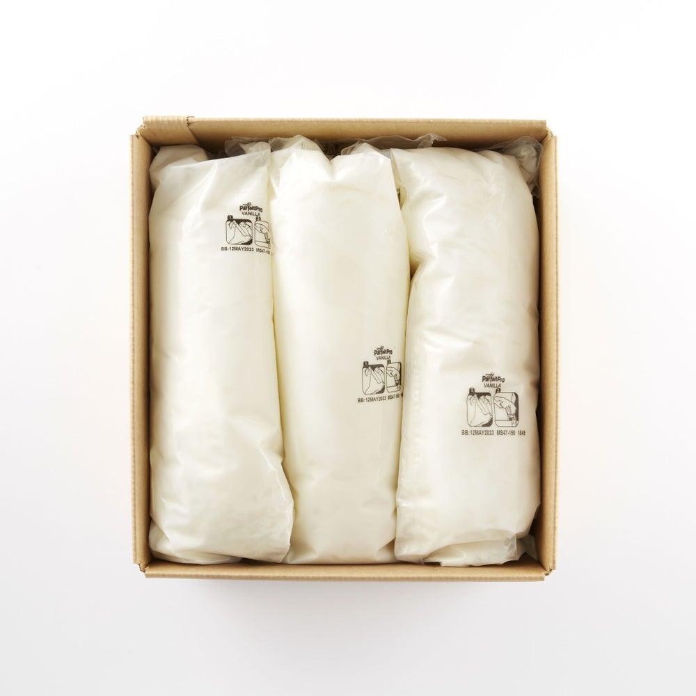 - Bulk, low fat, vanilla gluten-free yogurt in a convenient, multi serve pouch. Easy, three step tear, squeeze, and toss process lets you make parfaits in less time, with less labor, mess, and waste.