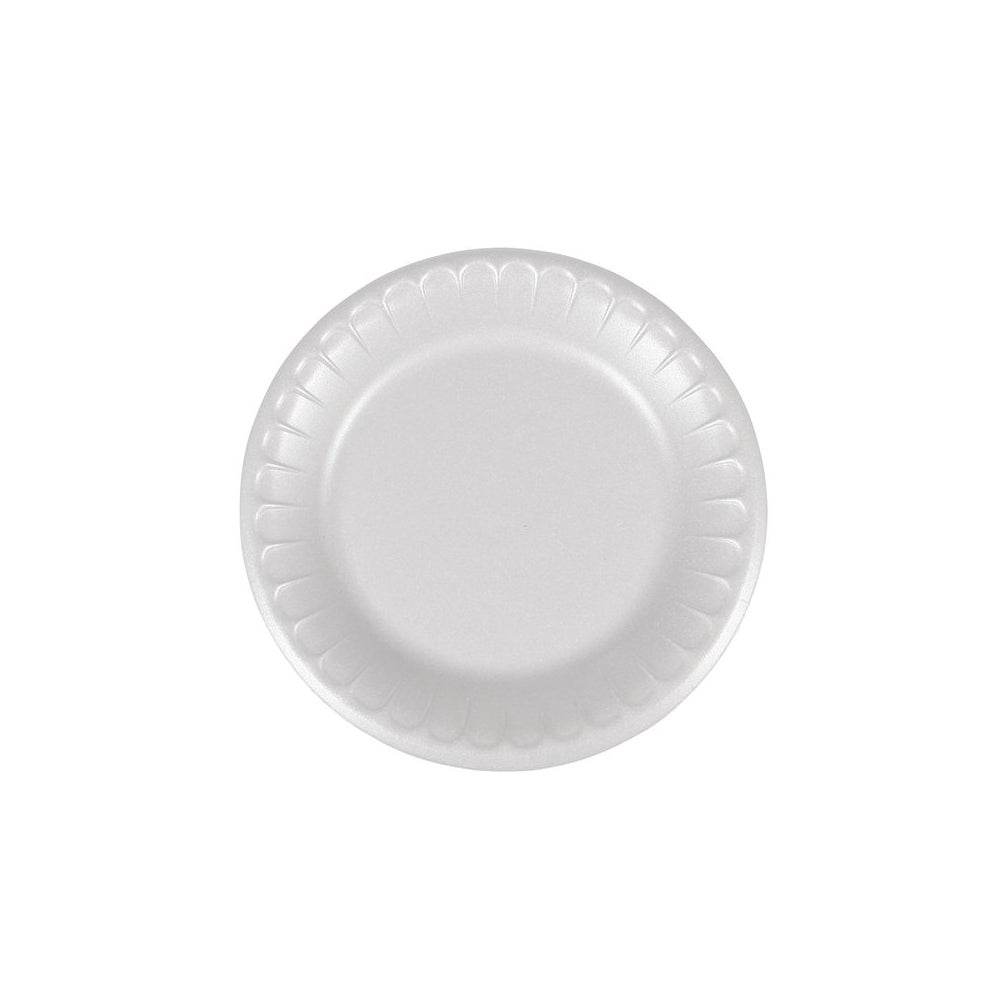 Pactiv 7 Inch Unlaminated Foam Plates, White, Polystyrene, 150 Ct Package, 6/Case