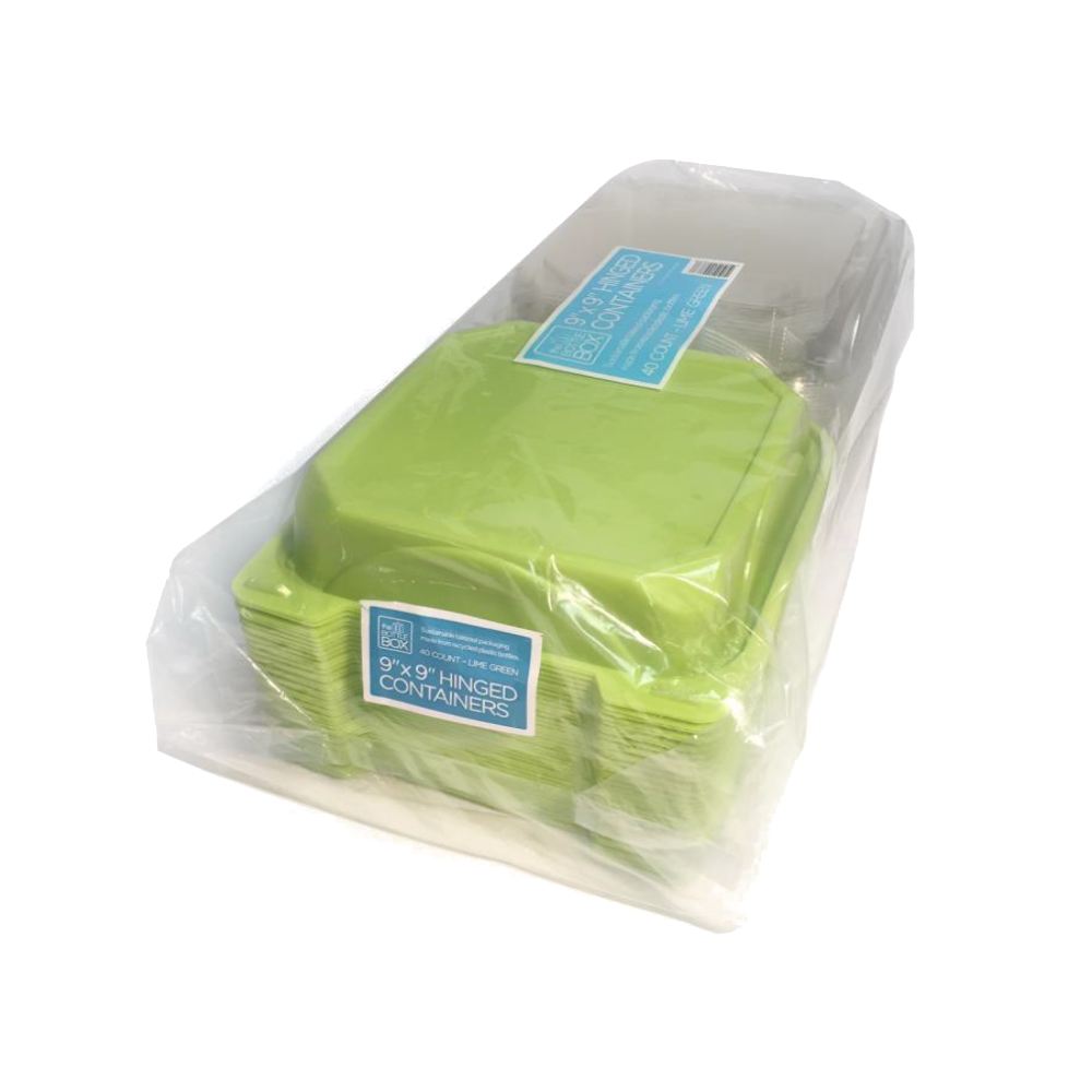 Bottle Box 9 x 9 Inch Plastic Containers, Lime, Hinged, with Clear Lid, RPET, 40 Ct Package, 4/Case